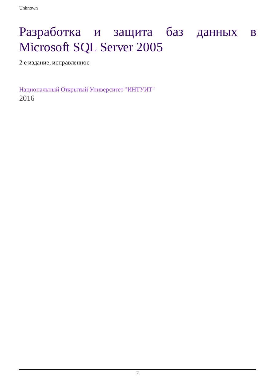 Разработка и защита баз данных в Microsoft SQL Server 2005