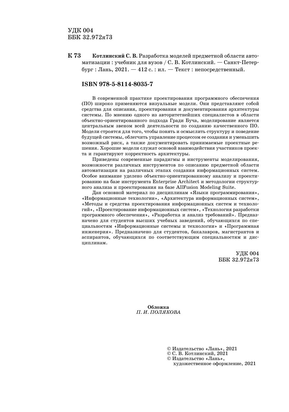 Приведены современные парадигмы и инструменты моделирования, возможности различных инструментов по описанию предметной области автоматизации на различных этапах создания информационных систем. Особое внимание уделено объектно-ориентированному анализу и проектированию на базе инструмента Enterprise Architect и методологии структурного анализа и проектирования на базе AllFusion Modeling Suite.