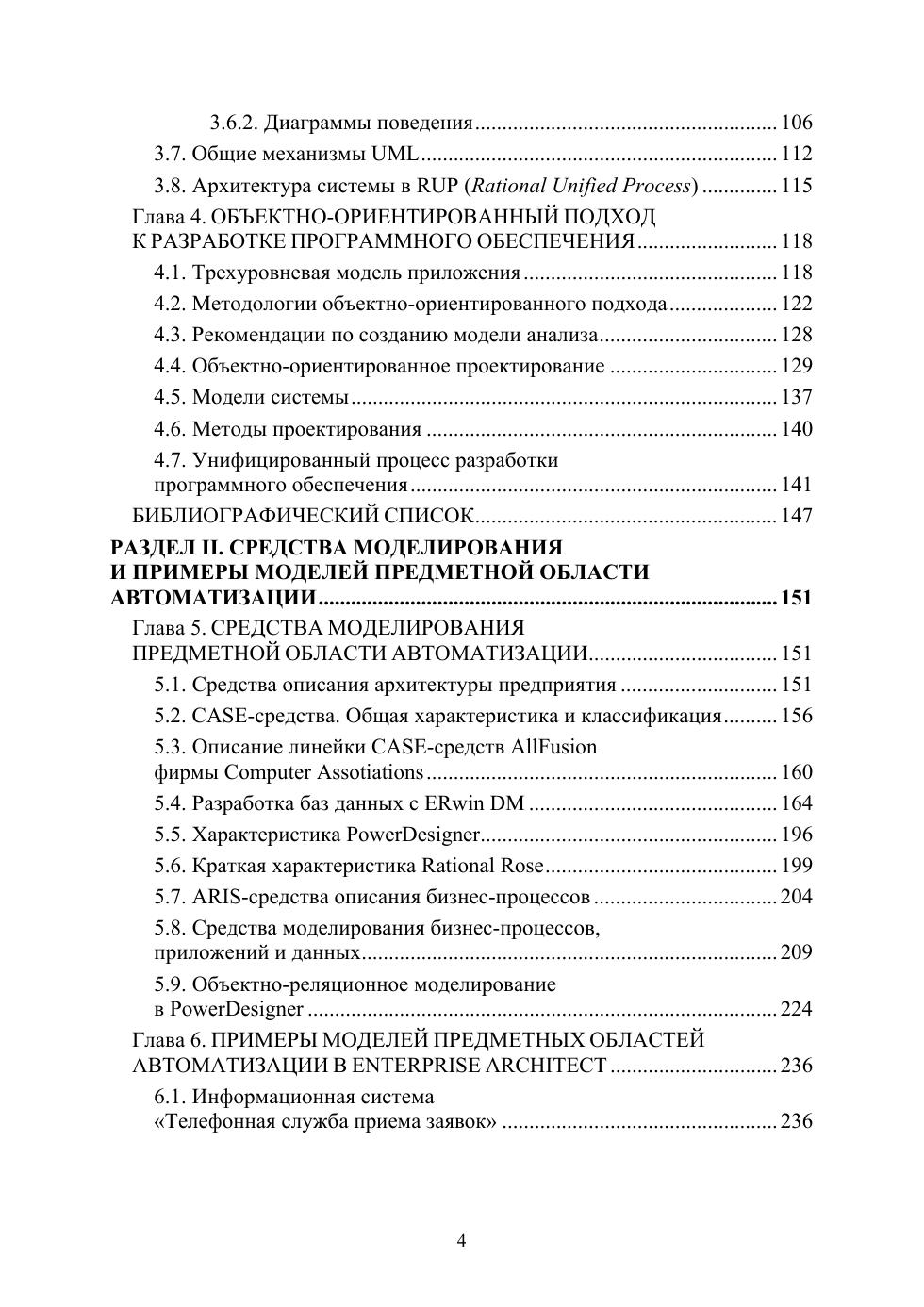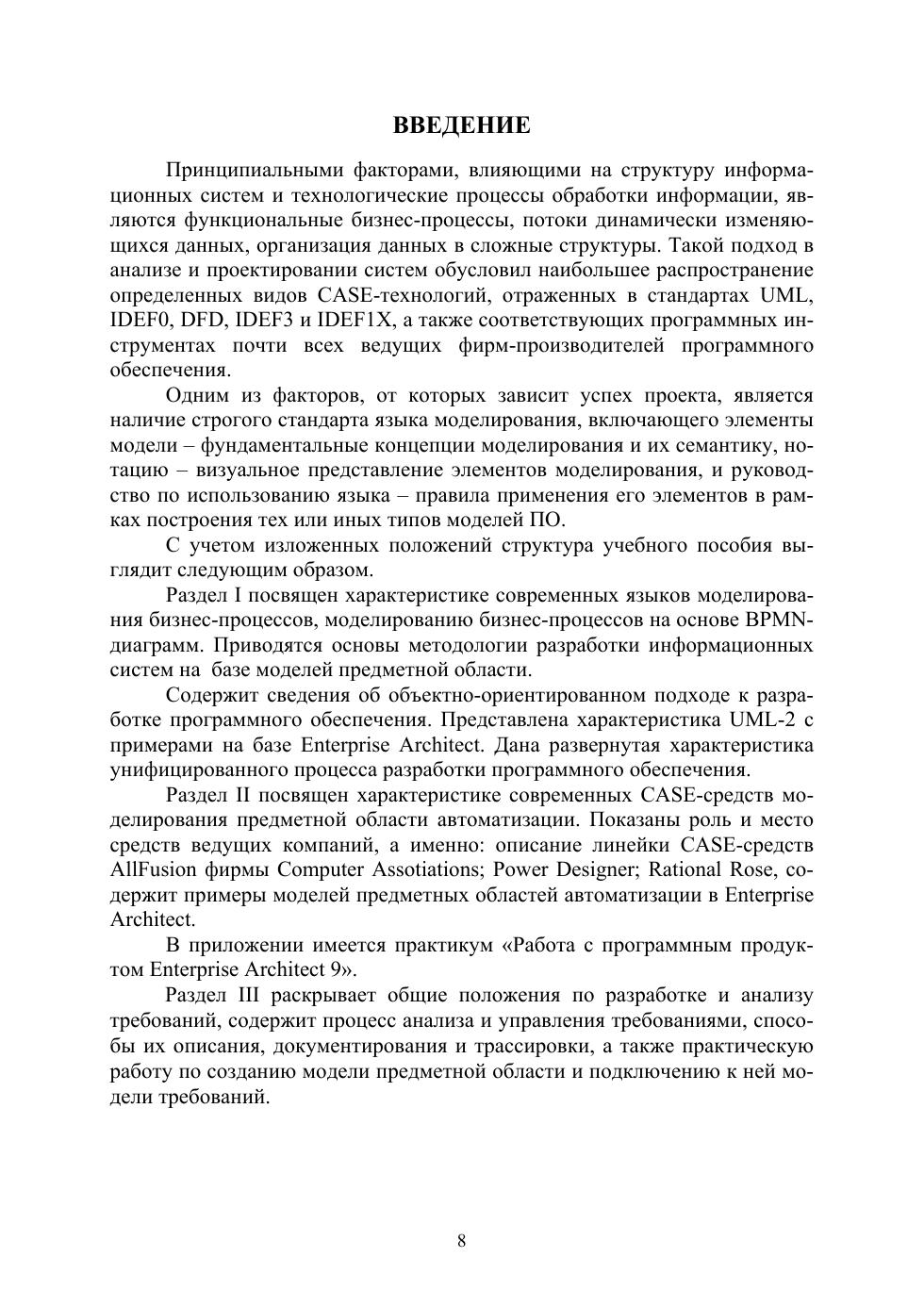 Приведены современные парадигмы и инструменты моделирования, возможности различных инструментов по описанию предметной области автоматизации на различных этапах создания информационных систем. Особое внимание уделено объектно-ориентированному анализу и проектированию на базе инструмента Enterprise Architect и методологии структурного анализа и проектирования на базе AllFusion Modeling Suite.