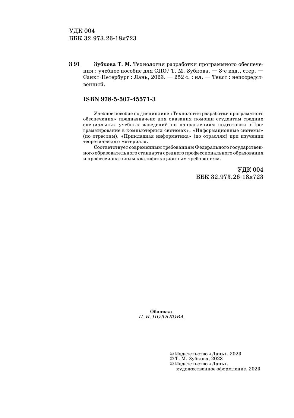 Учебное пособие по дисциплине «Технология разработки программного обеспечения» предназначено для оказания помощи студентам средних специальных учебных заведений по направлениям подготовки «Программирование в компьютерных системах», «Информационные системы» (по отраслям), «Прикладная информатика» (по отраслям) при изучении теоретического материала. Соответствует современным требованиям Федерального государственного образовательного стандарта среднего профессионального образования и профессиональным квалификационным требованиям.