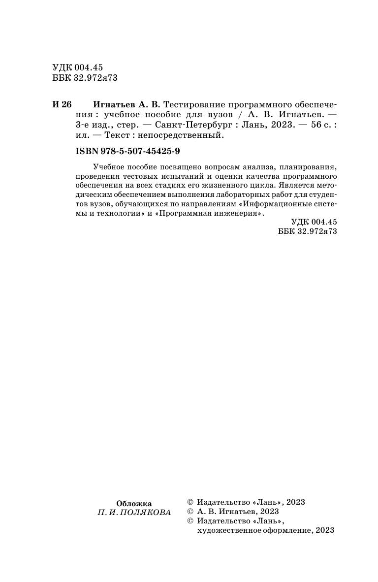 Учебное пособие посвящено вопросам анализа, планирования, проведения тестовых испытаний и оценки качества программного обеспечения на всех стадиях его жизненного цикла. Является методическим обеспечением выполнения лабораторных работ для студентов, обучающихся по направлениям «Информационные системы и технологии» и «Программная инженерия».