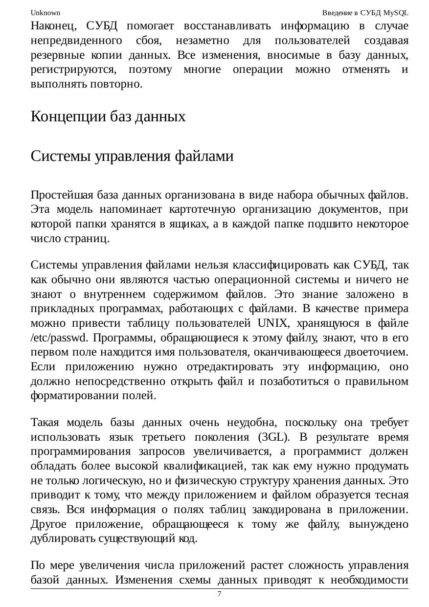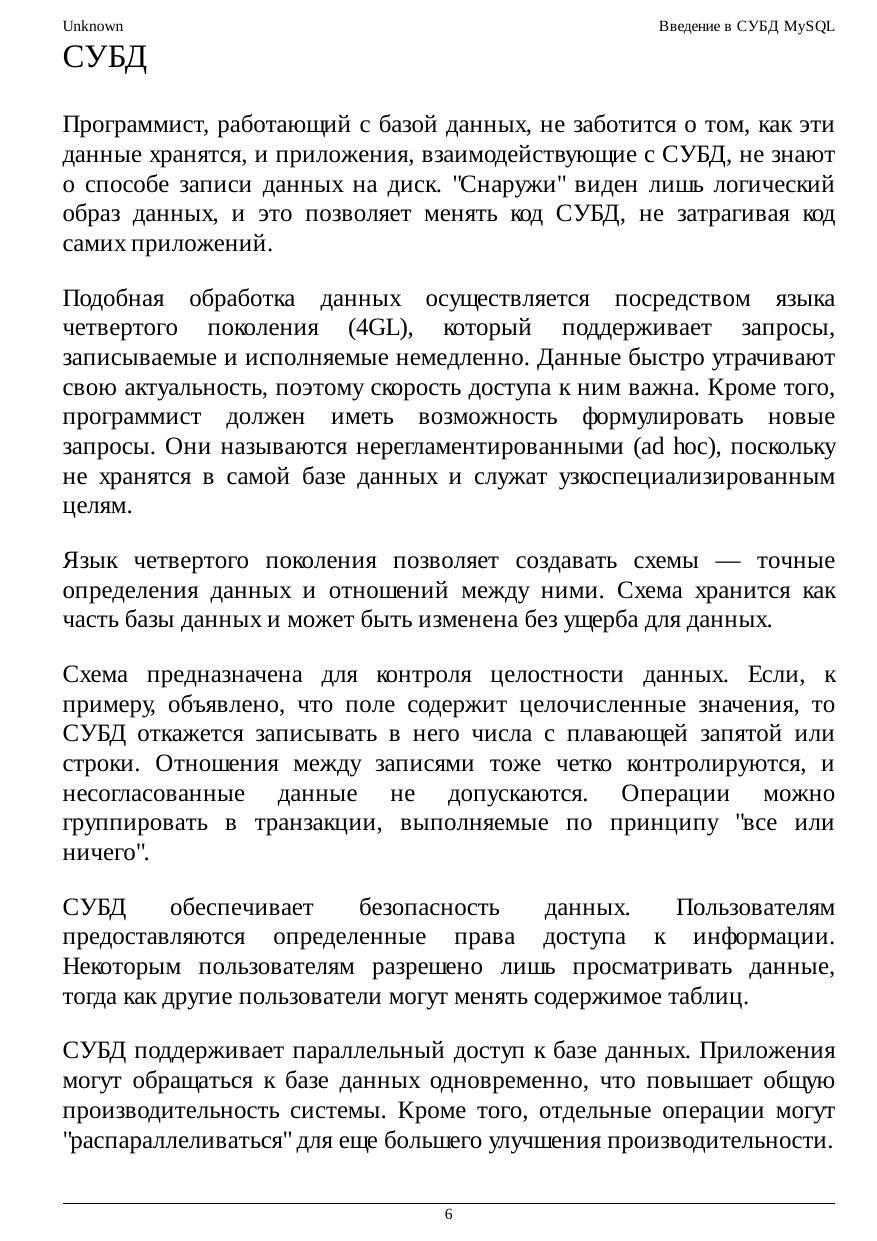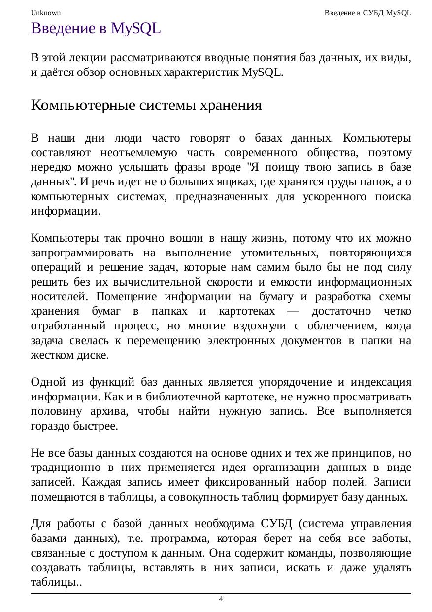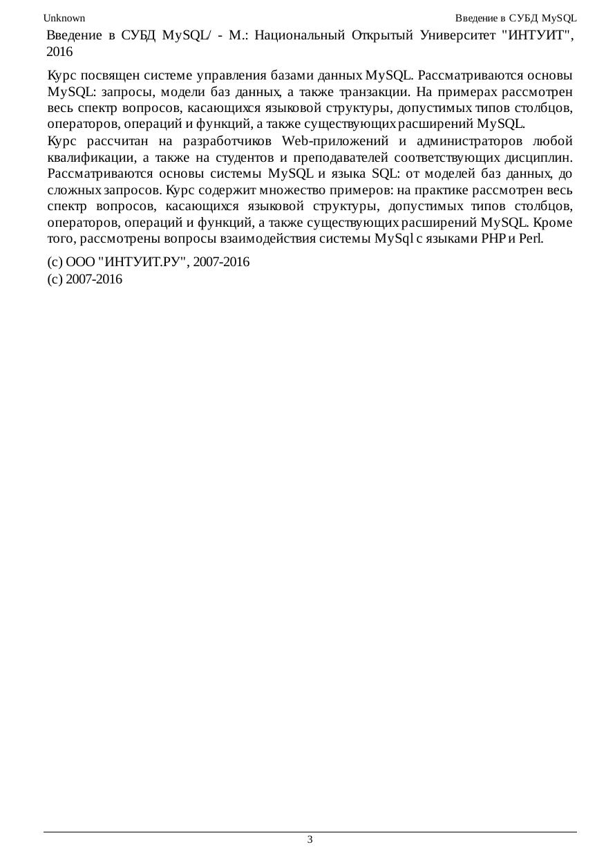 Курс посвящен системе управления базами данных MySQL. Рассматриваются основы MySQL: запросы, модели баз данных, а также транзакции. На примерах рассмотрен весь спектр вопросов, касающихся языковой структуры, допустимых типов столбцов, операторов, операций и функций, а также существующих расширений MySQL. Курс рассчитан на разработчиков Web-приложений и администраторов любой квалификации, а также на студентов и преподавателей соответствующих дисциплин. Рассматриваются основы системы MySQL и языка SQL: от моделей баз данных, до сложных запросов. Курс содержит множество примеров: на практике рассмотрен весь спектр вопросов, касающихся языковой структуры, допустимых типов столбцов, операторов, операций и функций, а также существующих расширений MySQL. Кроме того, рассмотрены вопросы взаимодействия системы MySql с языками PHP и Perl.