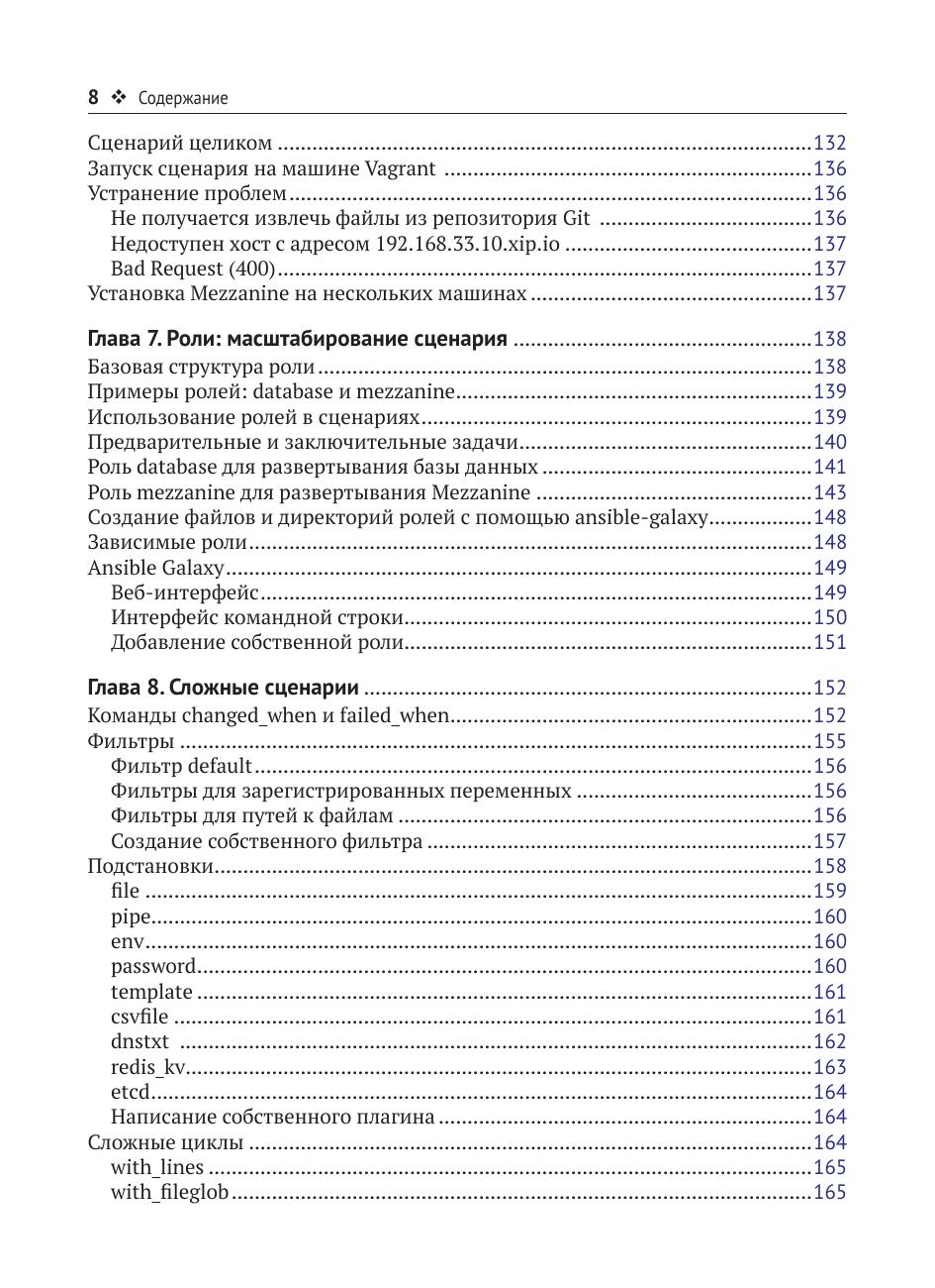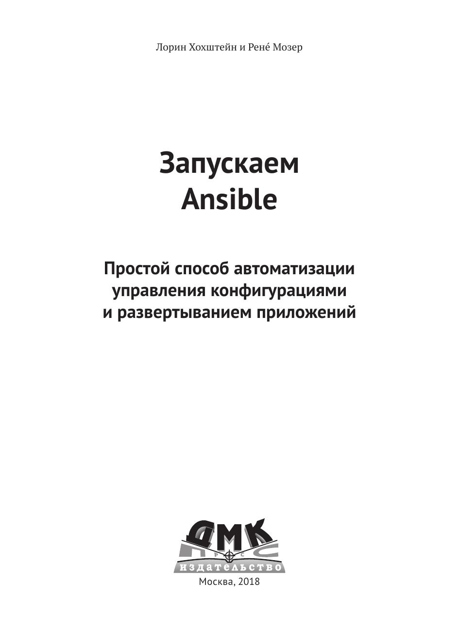 управления конфигурациями, установить контроль над удаленными серверами, а также задействовать мощный функционал встроенных модулей. Рассмотрено чем Ansible отличается от других систем управления конфигурациями, приведены примеры развертывания на различных облачных платформах. Издание будет полезно разработчикам и системным администраторам, принимающим решения о выборе способов автоматизации.