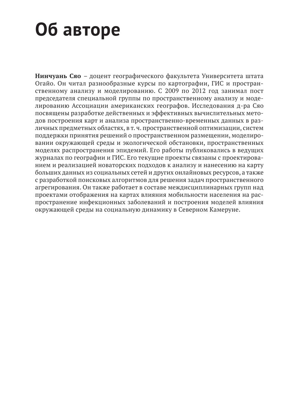 Теоретический материал подкрепляется кодом на популярном языке программирования Python. Благодаря развернутому описанию многих упоминаемых алгоритмов эта книга может стать новым учебником для студентов, изучающих этот сложный и важный раздел географии.