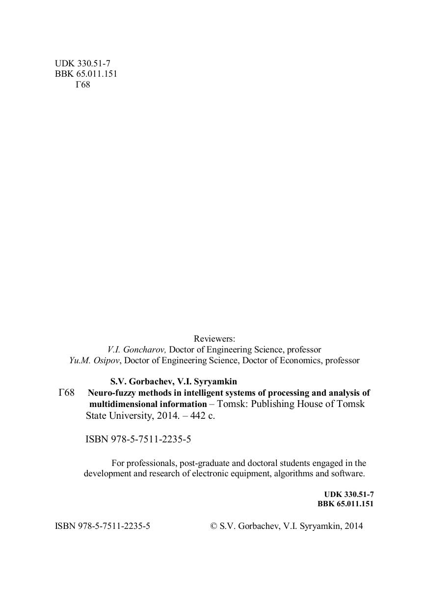 Нейро-нечеткие методы в интеллектуальных системах обработки и анализа многомерной информации
