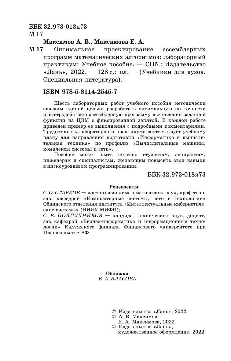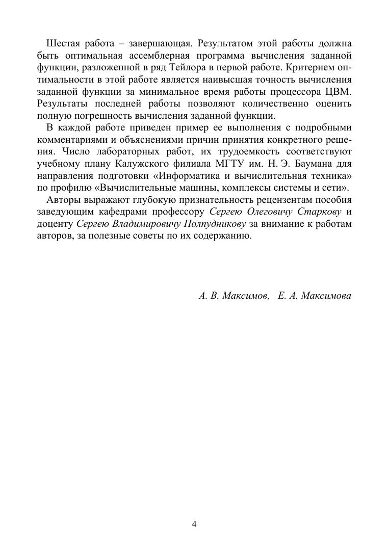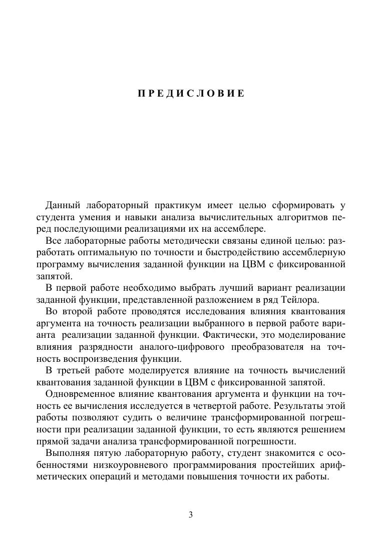 Шесть лабораторных работ учебного пособия методически связаны единой целью: разработать оптимальную по точности и быстродействию ассемблерную программу вычисления заданной функции на ЦВМ с фиксированной запятой. В каждой работе приведен пример ее выполнения с подробными комментариями. Трудоемкость лабораторного практикума соответствует учебному плану для направления подготовки «Информатика и вычислительная техника» по профилю «Вычислительные машины, комплексы системы и сети». Пособие может быть полезно студентам, аспирантам, инженерам и специалистам, желающим повысить свои навыки в низкоуровневом программировании.