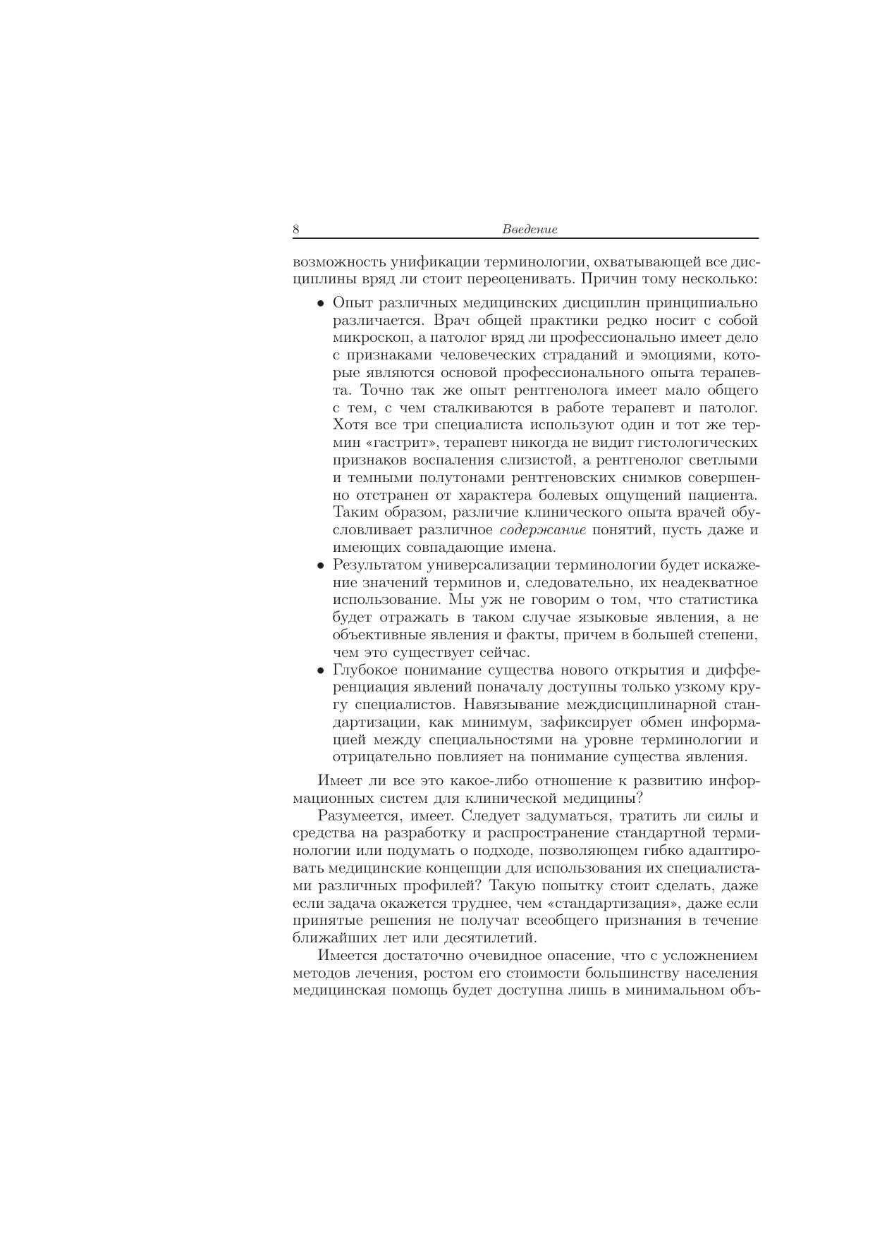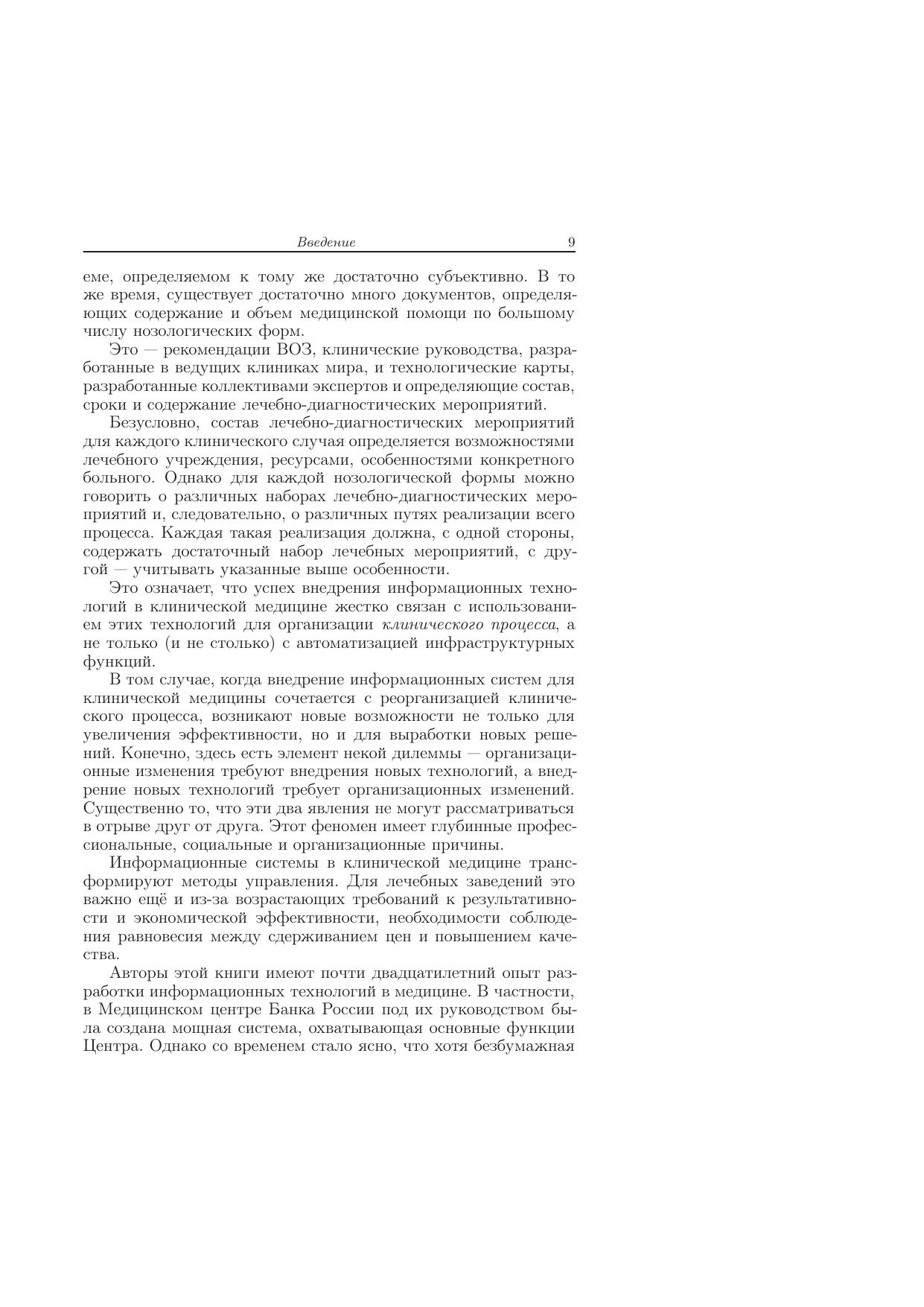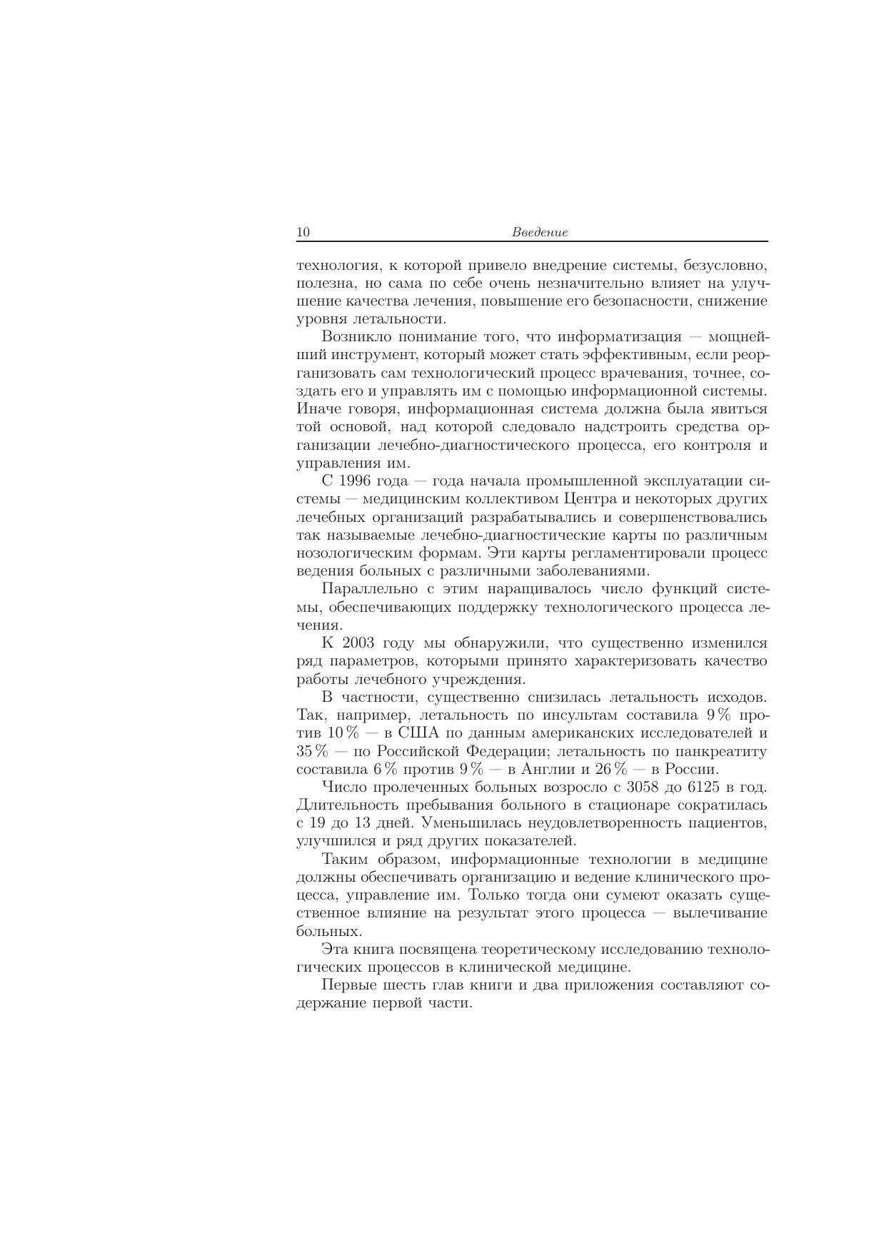 Книга посвящена теоретическому исследованию технологических процессов в клинической медицине. В первой части книги сформулированы основные принципы медицинской технологии, организационные уровни и структура медицинского технологического процесса (МТП). Сформулированы основные понятия МТП, понятия состояния и модели МТП. Рассмотрены способы графического представления МТП. Введены и исследованы понятия эффективного и монотонного МТП. Описаны программные реализации моделей МТП. Вторая часть книги посвящена исследованию сходства и релевантности медицинских технологических процессов, анализу клинических данных и построению общих описаний МТП по примерам, синтезуМТП с различной маршрутизацией — последовательной, параллельной и т.д., исследованию вопросов МТП. Для специалистов, занимающихся практической работой в области медицинской информатики.