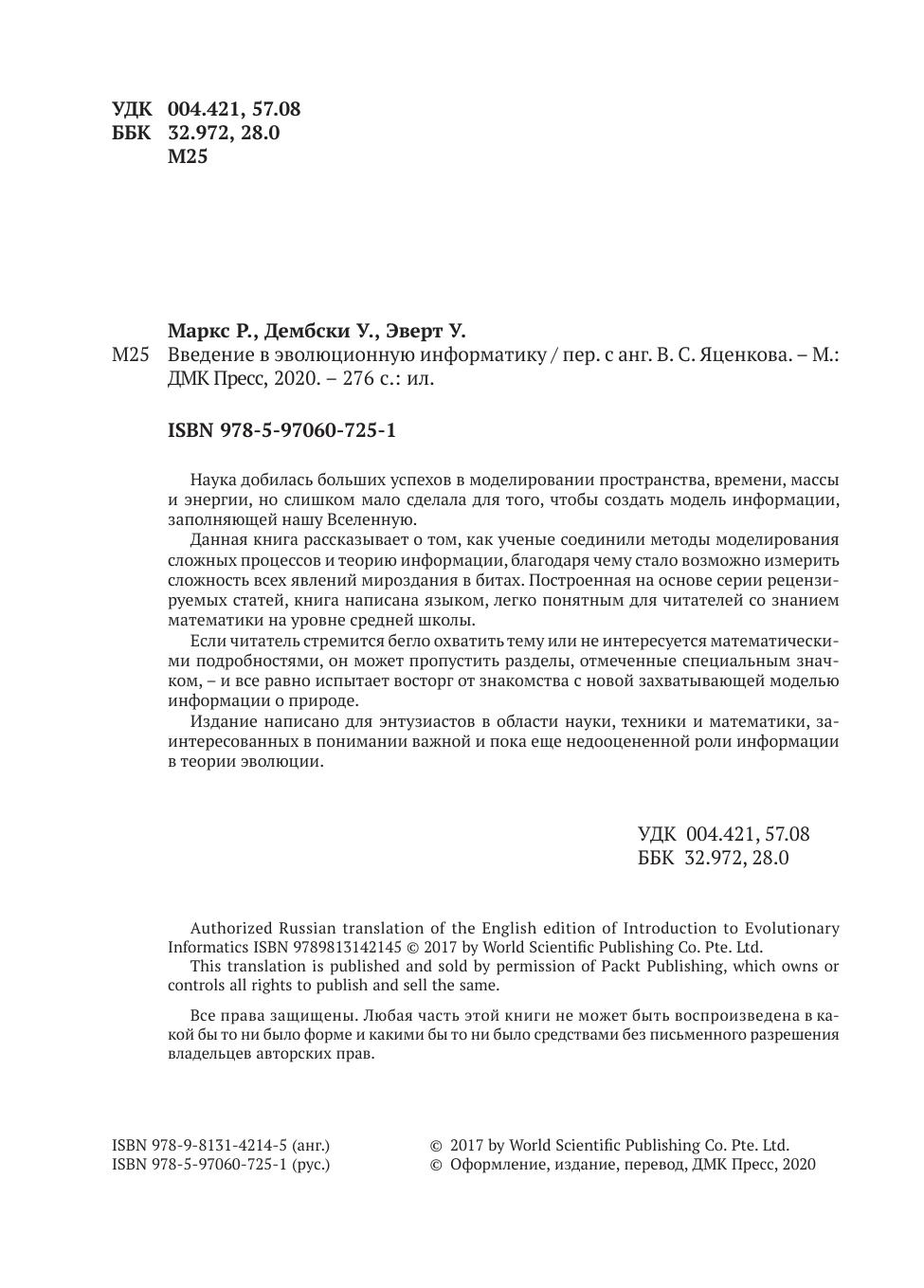 Книга написана для энтузиастов в области науки, техники и математики, заинтересованных в понимании важной и пока еще недооцененной роли информации в теории эволюции.