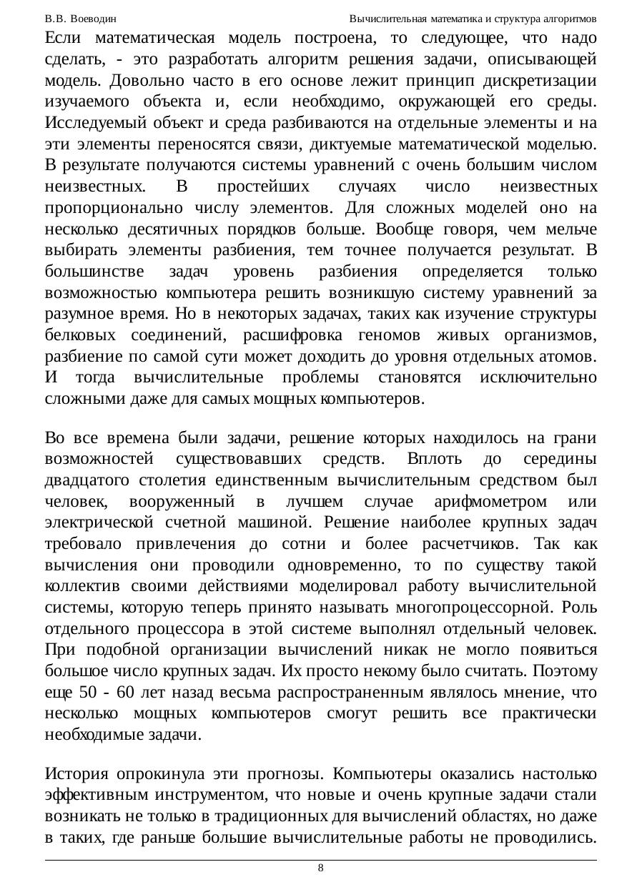 В курсе представлены лекции, прочитанные автором в различных учебных заведениях, институтах и на научных конференциях. Все они посвящены вопросам эффективного решения задач на вычислительных системах параллельной архитектуры. Особое внимание уделяется изучению информационной структуры алгоритмов и ее влиянию на разработку эффективно реализуемых программ. Обсуждаются особенности математического образования по отношению к требованиям параллельных вычислений.
