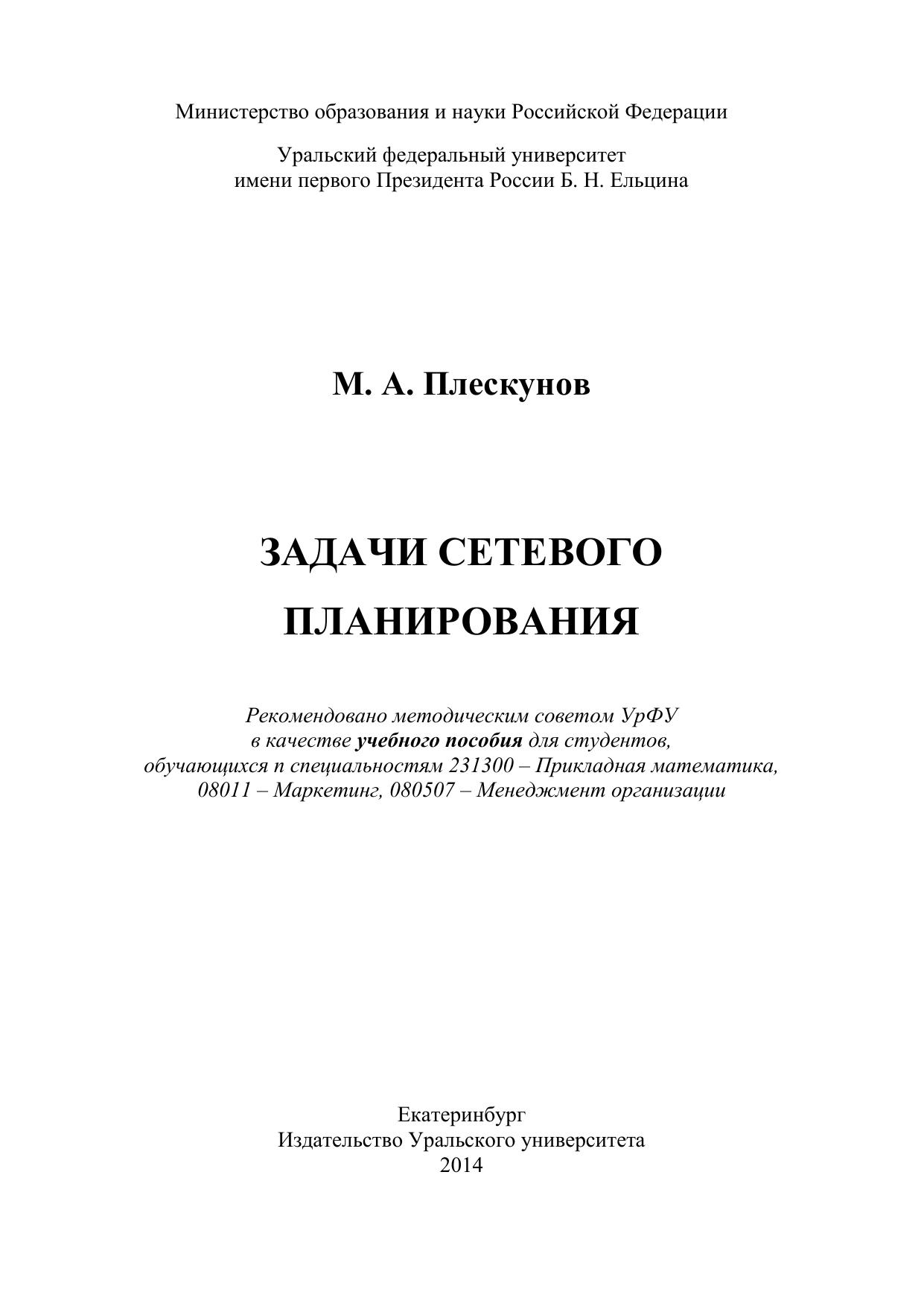 Задачи сетевого планирования: учебное пособие