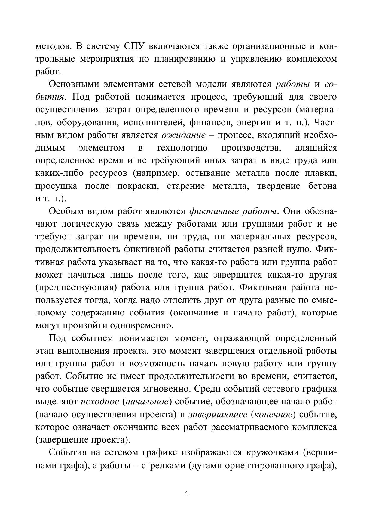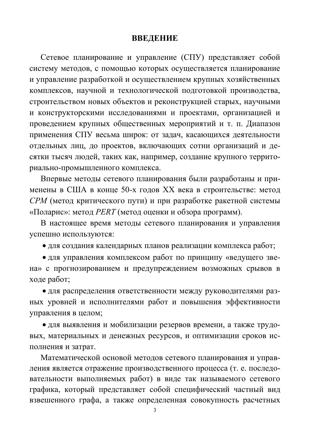 Пособие содержит методы решения основных задач теории сетевого планирования и управления, рассматриваются вопросы построения сетевого графика, отыскания критического пути, расчета резервов времени событий и работ. Даны методы отыскания вероятностных характеристик сетевого планирования для трехпараметрических и двухпараметрических моделей. Приведен алгоритм оптимизации стоимости проекта методом «время – стоимость» и нахождения плана выполнения работ с минимальной стоимостью за минимальное время. В пособие включены варианты индивидуальных заданий, охватывающие все разобранные виды задач.