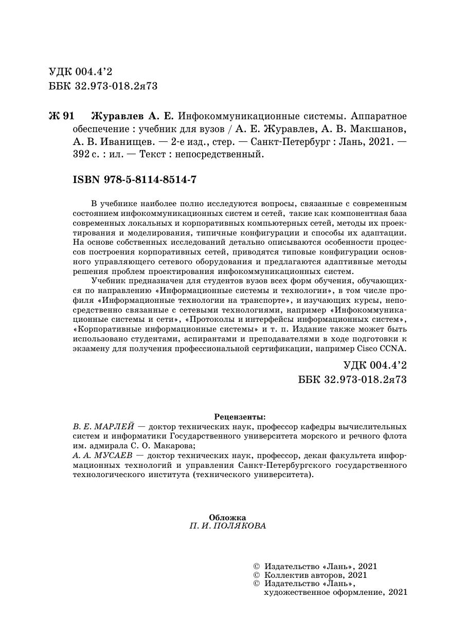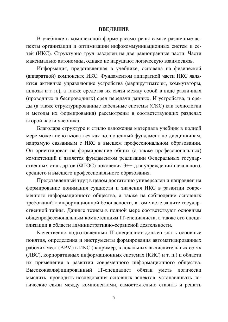 В учебнике наиболее полно исследуются вопросы, связанные с современным состоянием инфокоммуникационных систем и сетей, такие как компонентная база современных локальных и корпоративных компьютерных сетей, методы их проектирования и моделирования, типичные конфигурации и способы их адаптации. В том числе на основе собственных исследований детально описываются особенности процессов построения корпоративных сетей, приводятся типовые конфигурации основного управляющего сетевого оборудования и предлагаются адаптивные методы решения проблем проектирования инфокоммуникационных систем.