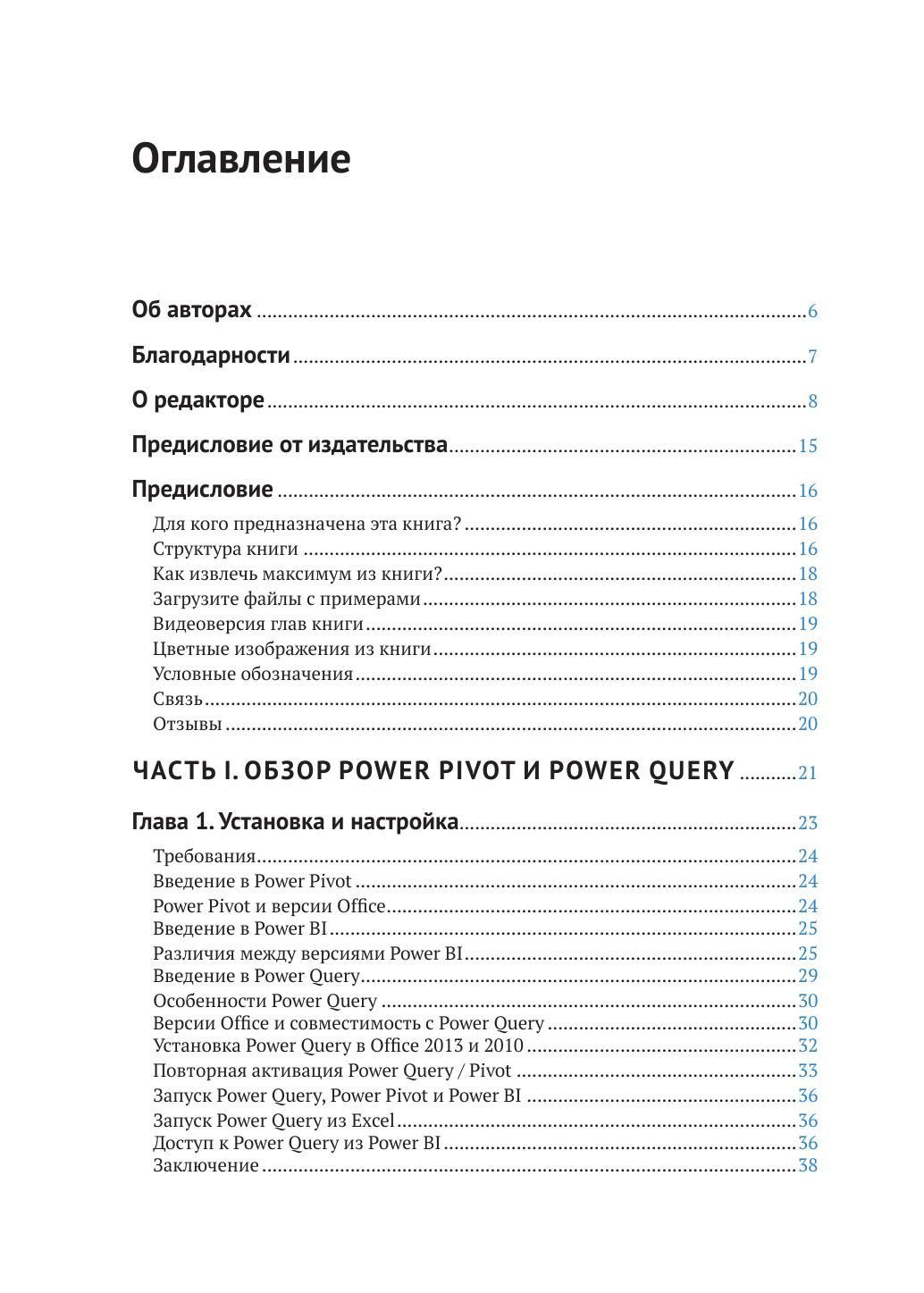 Power Query – технология, позволяющая соединяться с источниками данных, а также преобразовывать и очищать информацию для ее дальнейшего анализа. Эта книга научит вас создавать интерактивные отчеты и дашборды посредством Excel и Power BI, используя множество источников данных. Вы узнаете о том, как получать доступ к Power Query из разных версий Microsoft Excel и как установить движок Power BI. Также рассмотрен инструмент Power Pivot; особое внимание уделено трудностям, которые могут возникнуть у пользователей Excel при очистке данных с его помощью. Показано, как Power Query нивелирует недостатки, характерные для Power Pivot. В заключение показаны возможности языка M, – его синтаксис и структура рассмотрены на многочисленных примерах.