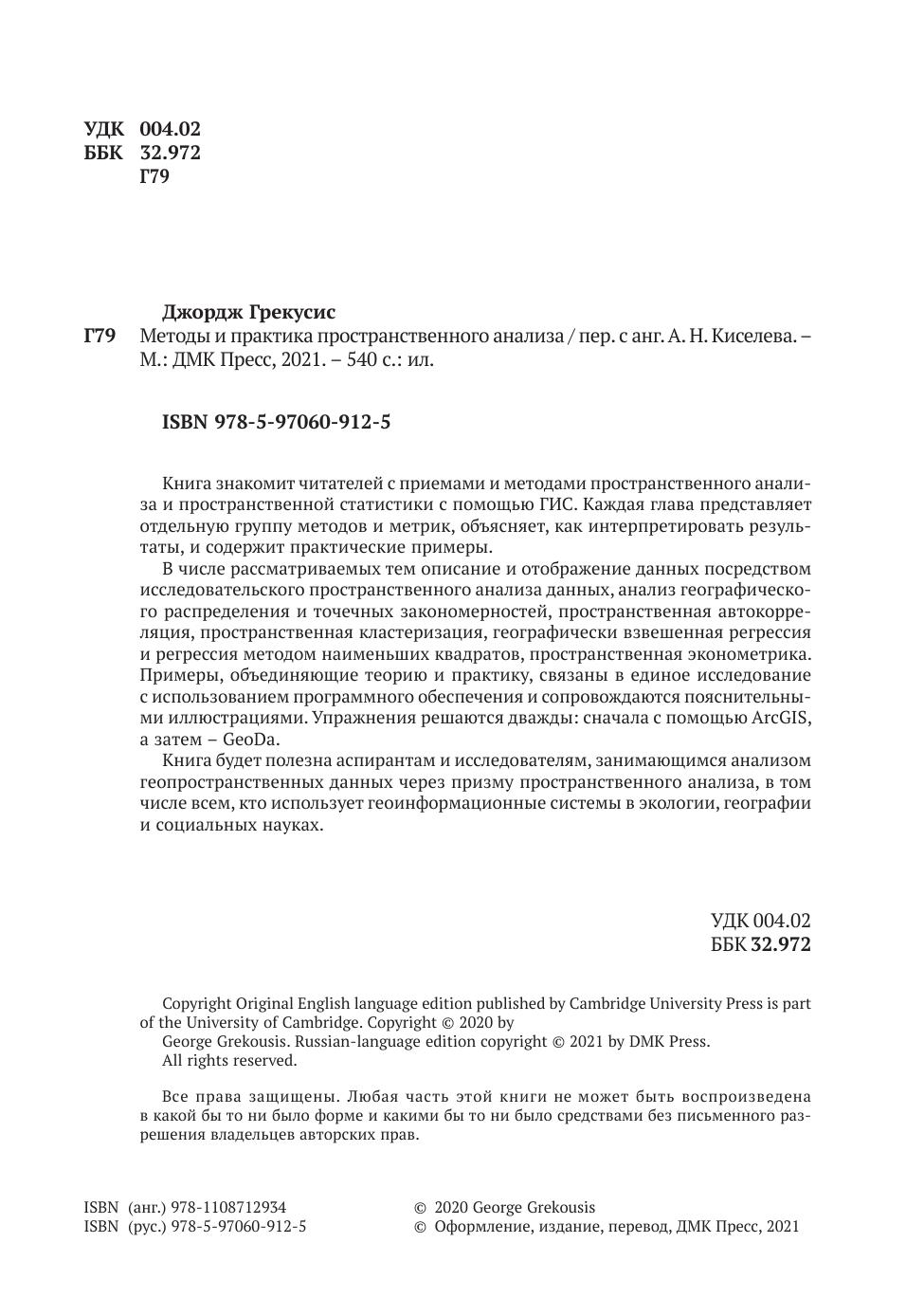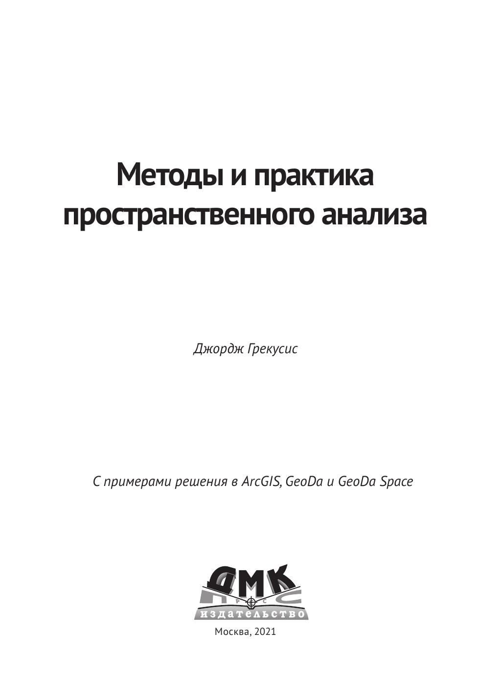 Издание будет полезно аспирантам и исследователям, занимающимся анализом геопространственных данных через призму пространственного анализа, в том числе всем, кто использует геоинформационные системы в экологии, географии и социальных науках.