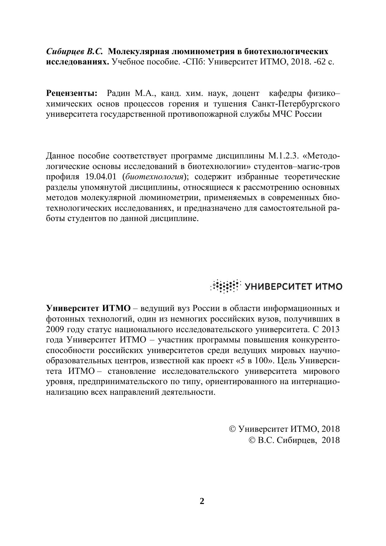 Данное пособие соответствует программе дисциплины М.1.2.3. «Методологические основы исследований в биотехнологии» студентов–магис-тров профиля 19.04.01 (биотехнология); содержит избранные теоретические разделы упомянутой дисциплины, относящиеся к рассмотрению основных методов молекулярной люминометрии, применяемых в современных биотехнологических исследованиях, и предназначено для самостоятельной работы студентов по данной дисциплине.