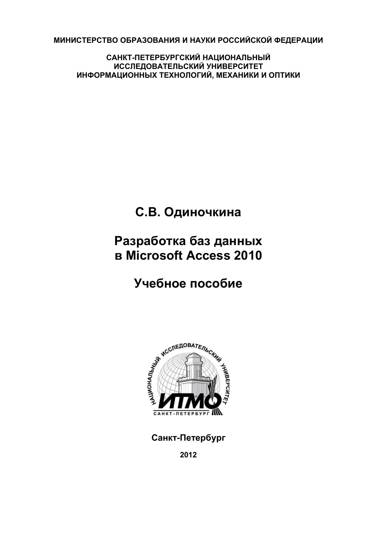 Разработка баз данных в Microsoft Access 2010