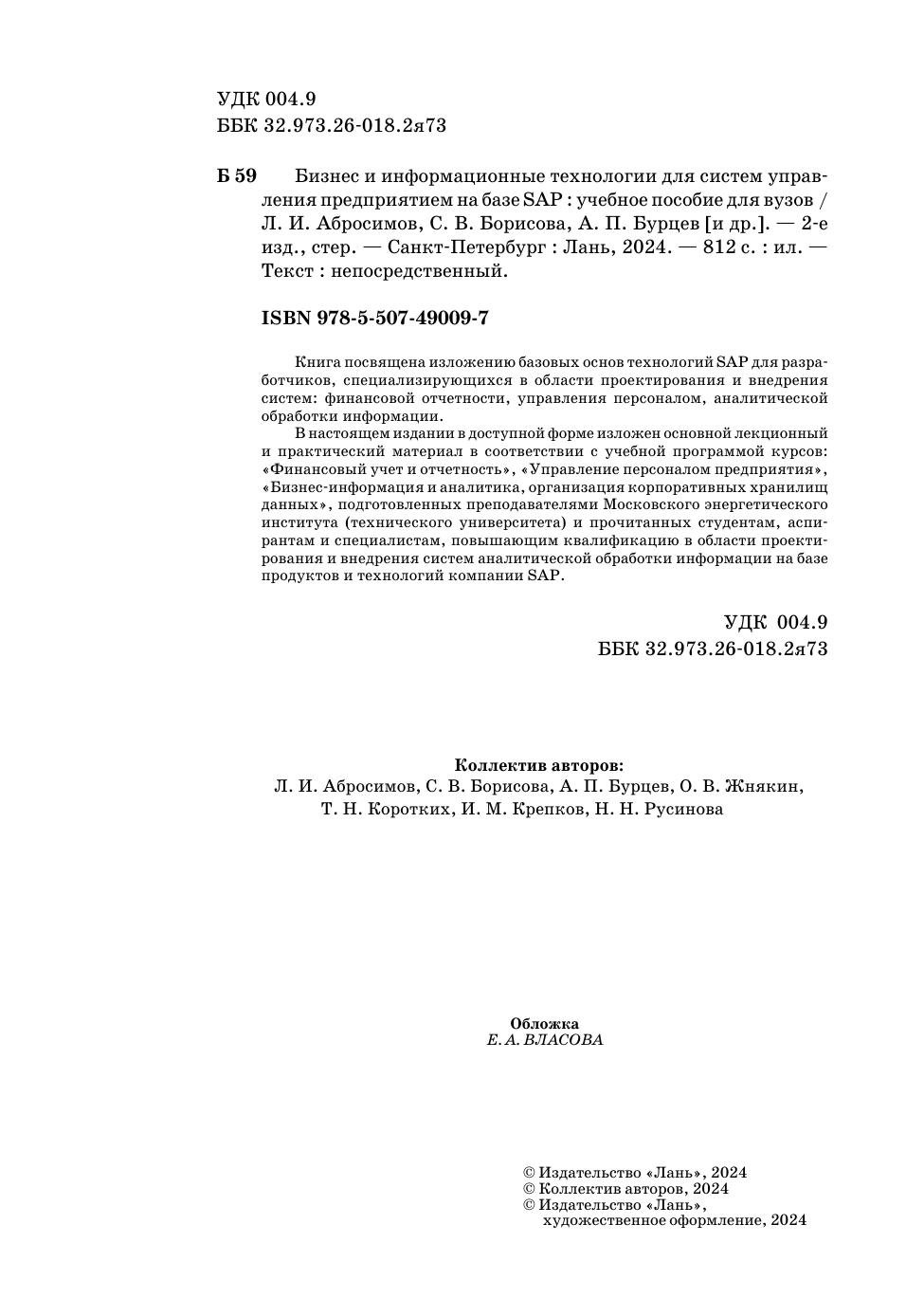 Книга посвящена изложению базовых основ технологий SAP для разработчиков, специализирующихся в области проектирования и внедрения систем: финансовой отчетности, управления персоналом, аналитической обработки информации. В настоящем издании в доступной форме изложен основной лекционный и практический материал в соответствии с учебной программой курсов: «Финансовый учет и отчетность», «Управление персоналом предприятия», «Бизнес-информация и аналитика, организация корпоративных хранилищ данных», подготовленных преподавателями Московского энергетического института (технического университета) и прочитанных студентам, аспирантам и специалистам, повышающим квалификацию в области проектирования и внедрения систем аналитической обработки информации на базе продуктов и технологий компании SAP.