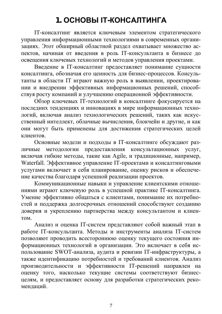 Учебное пособие представляет собой комплексный ресурс, созданный автором с глубоким практическим опытом в области IT. Благодаря этому книга отличается реалистичным и применимым подходом к изучению IT-консалтинга, делая её ценной как для начинающих, так и для опытных специалистов. Основываясь на реальном опыте автора, пособие детально освещает критически важные аспекты IT-консалтинга — от анализа IT-систем до управления проектами и цифровой трансформации. Каждая глава содержит конкретные примеры и кейс-стади, демонстрируя применение теории на практике и позволяя студентам увидеть реальное воздействие IT-решений на бизнес. Соответствует современным требованиям Федерального государственного образовательного стандарта среднего профессионального образования и профессиональным квалификационным требованиям.
