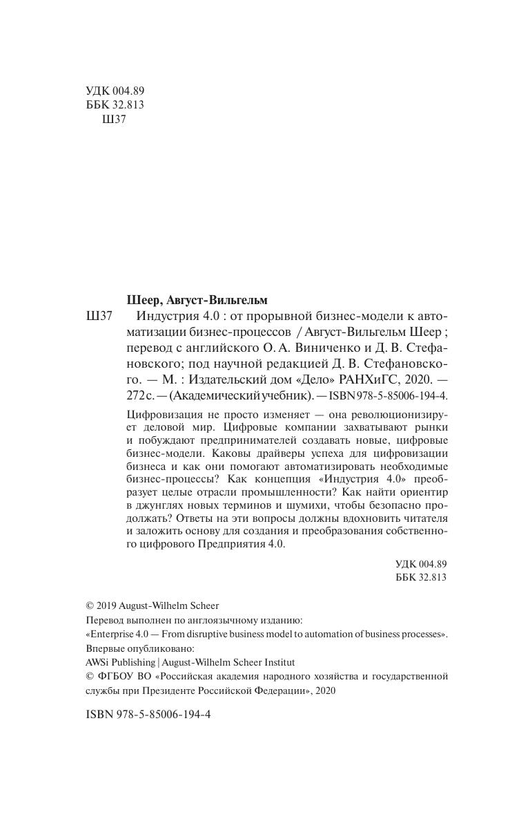 Цифровизация не просто изменяет — она революционизирует деловой мир. Цифровые компании захватывают рынки и побуждают предпринимателей создавать новые, цифровые бизнес-модели. Каковы драйверы успеха для цифровизации бизнеса и как они помогают автоматизировать необходимые бизнес-процессы? Как концепция «Индустрия 4.0» преобразует целые отрасли промышленности? Как найти ориентир в джунглях новых терминов и шумихи, чтобы безопасно продолжать? Ответы на эти вопросы должны вдохновить читателя и заложить основу для создания и преобразования собственного цифрового Предприятия 4.0.