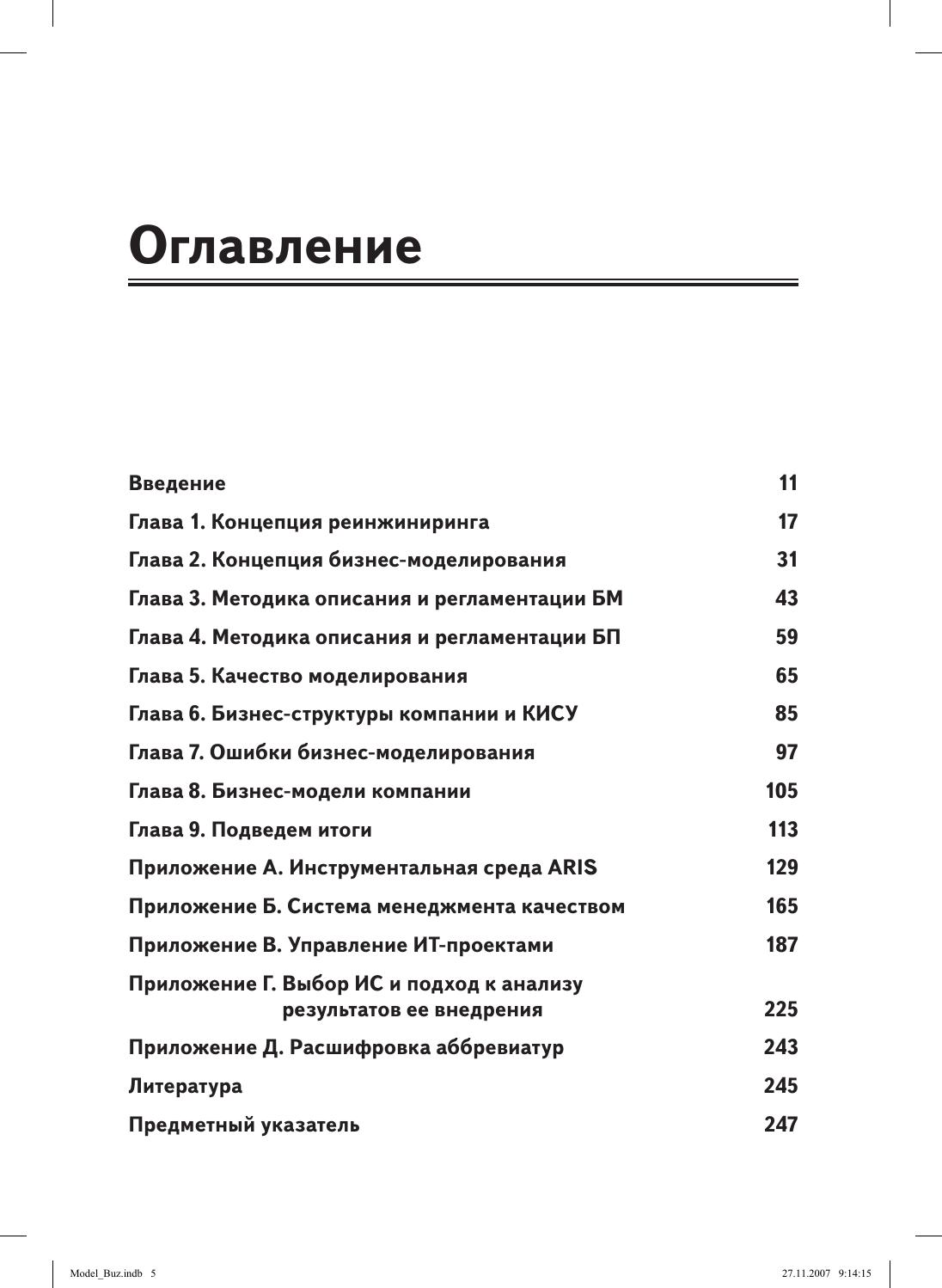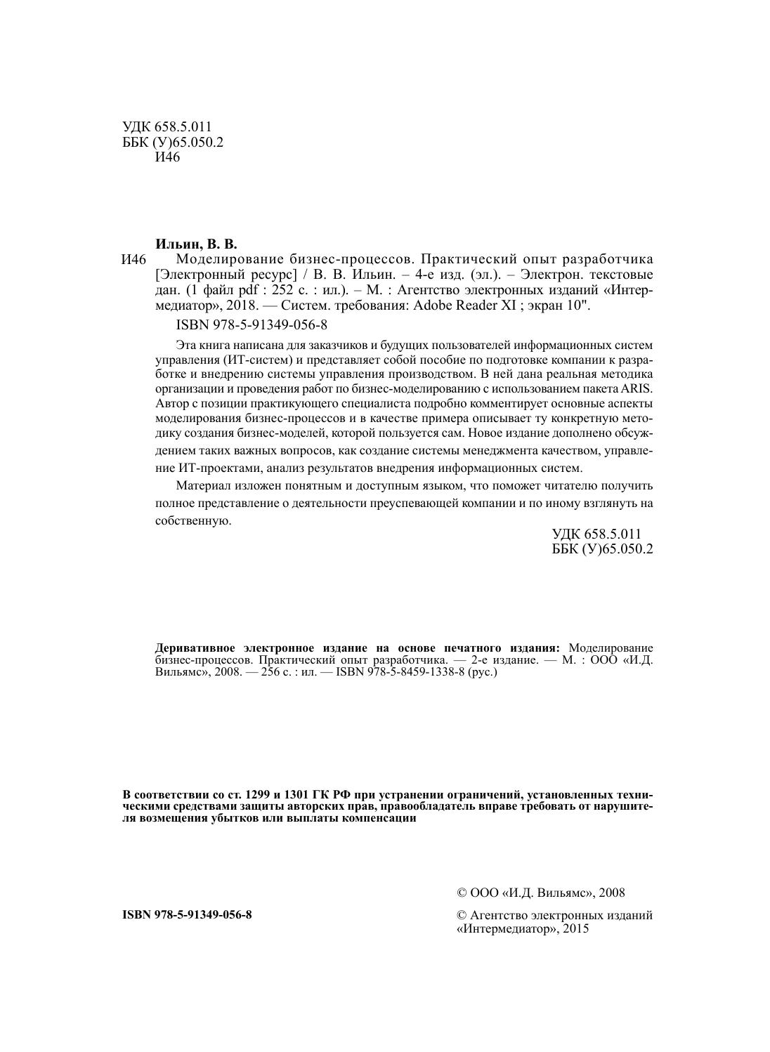 Эта книга написана для заказчиков и будущих пользователей информационных систем управления (ИТ-систем) и представляет собой пособие по подготовке компании к разработке и внедрению системы управления производством. В ней дана реальная методика организации и проведения работ по бизнес-моделированию с использованием пакета ARIS. Автор с позиции практикующего специалиста подробно комментирует основные аспекты моделирования бизнес-процессов и в качестве примера описывает ту конкретную методику создания бизнес-моделей, которой пользуется сам. Новое издание дополнено обсуждением таких важных вопросов, как создание системы менеджмента качеством, управление ИТ-проектами, анализ результатов внедрения информационных систем.