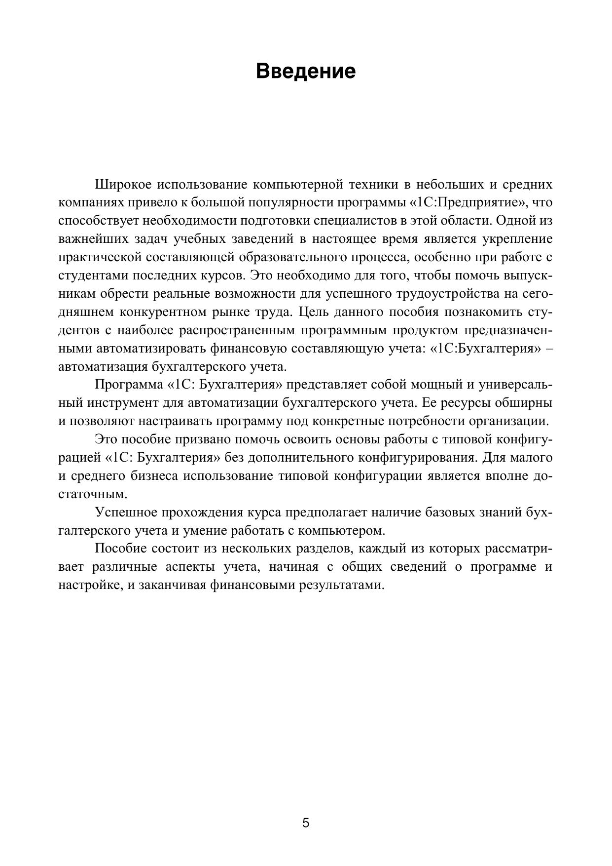 Пособие содержит основные сведения о возможностях современного программного обеспечения автоматизации бухгалтерского учета и пред-назначено для освоения программного продукта 1С:Бухгалтерия 8.3. В первую очередь пособие ориентировано на начинающих пользовате-лей, однако содержит информацию, полезную и для опытных пользовате-лей, уже работающих с указанной программой данной версии или пред-шествующей, что позволяет использовать пособие как справочник. Для студентов и слушателей высших учебных заведений экономиче-ских специальностей.