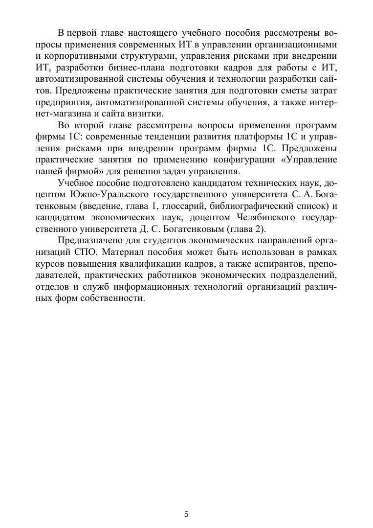 В учебном пособии описаны технологии для составления бизнес-плана предприятия, разработки автоматизированной системы обучения и интернет-магазина. Рассмотрены вопросы применения продуктов 1С в управлении фирмой. Предназначено для студентов экономических направлений организаций СПО. Материал пособия может быть использован в рамках курсов повышения квалификации кадров, а также аспирантов, преподавателей, практических работников экономических подразделений, отделов и служб информационных технологий организаций различных форм собственности. Рекомендовано для формирования профессиональных компетенций в соответствии с ФГОС СПО.