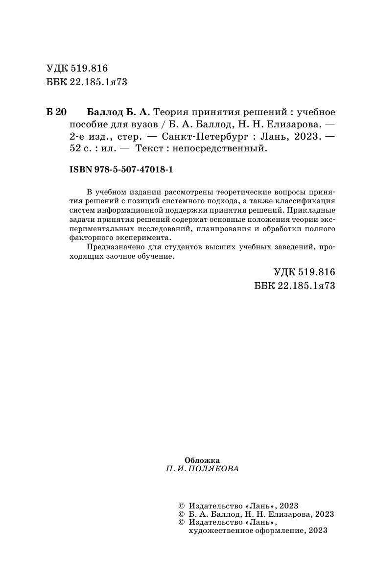 В учебном издании рассмотрены теоретические вопросы принятия решений с позиций системного подхода, а также классификация систем информационной поддержки принятия решений. Прикладные задачи принятия решений содержат основные положения теории экспериментальных исследований, планирования и обработки полного факторного эксперимента. Предназначено для студентов высших учебных заведений, проходящих заочное обучение.