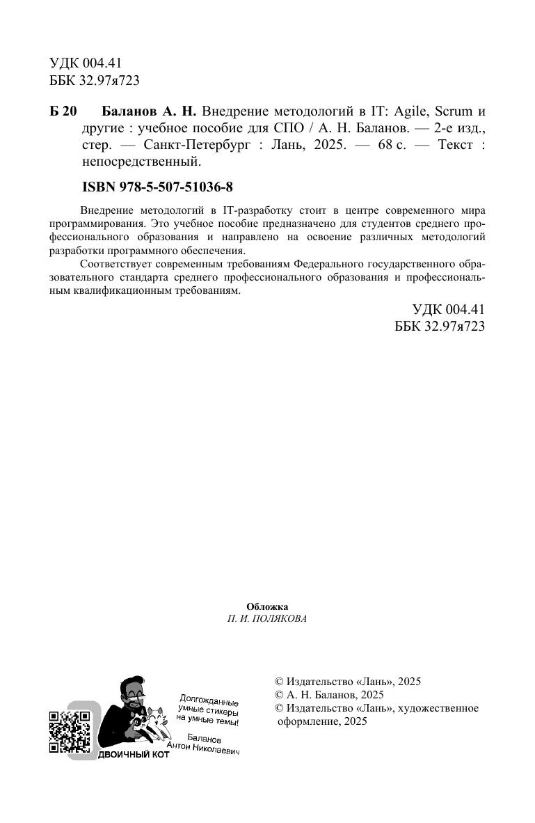 Внедрение методологий в IT-разработку стоит в центре современного мира программирования. Это учебное пособие предназначено для студентов среднего профессионального образования и направлено на освоение различных методологий разработки программного обеспечения. Соответствует современным требованиям Федерального государственного образовательного стандарта среднего профессионального образования и профессиональным квалификационным требованиям.