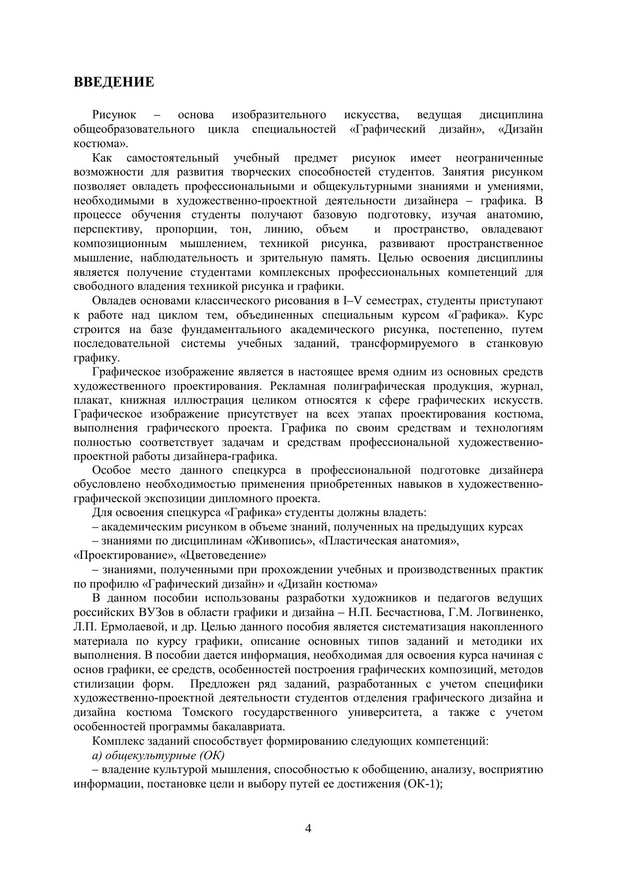 В пособии рассмотрены основы теории и практики графического изображения, представлены темы учебных заданий и методика их выполнения. Представленный иллюстративный материал демонстрирует разнообразную технику исполнения графических изображений, применение средств графики, графические работы мастеров прошлого, а также примеры выполнения учебных заданий разной сложности. Адресовано студентам высших учебных заведений направления подготовки 072500 (070601) – (62) – Дизайн, по профилю 01 – «Графический дизайн» и 03 – «Дизайн костюма».