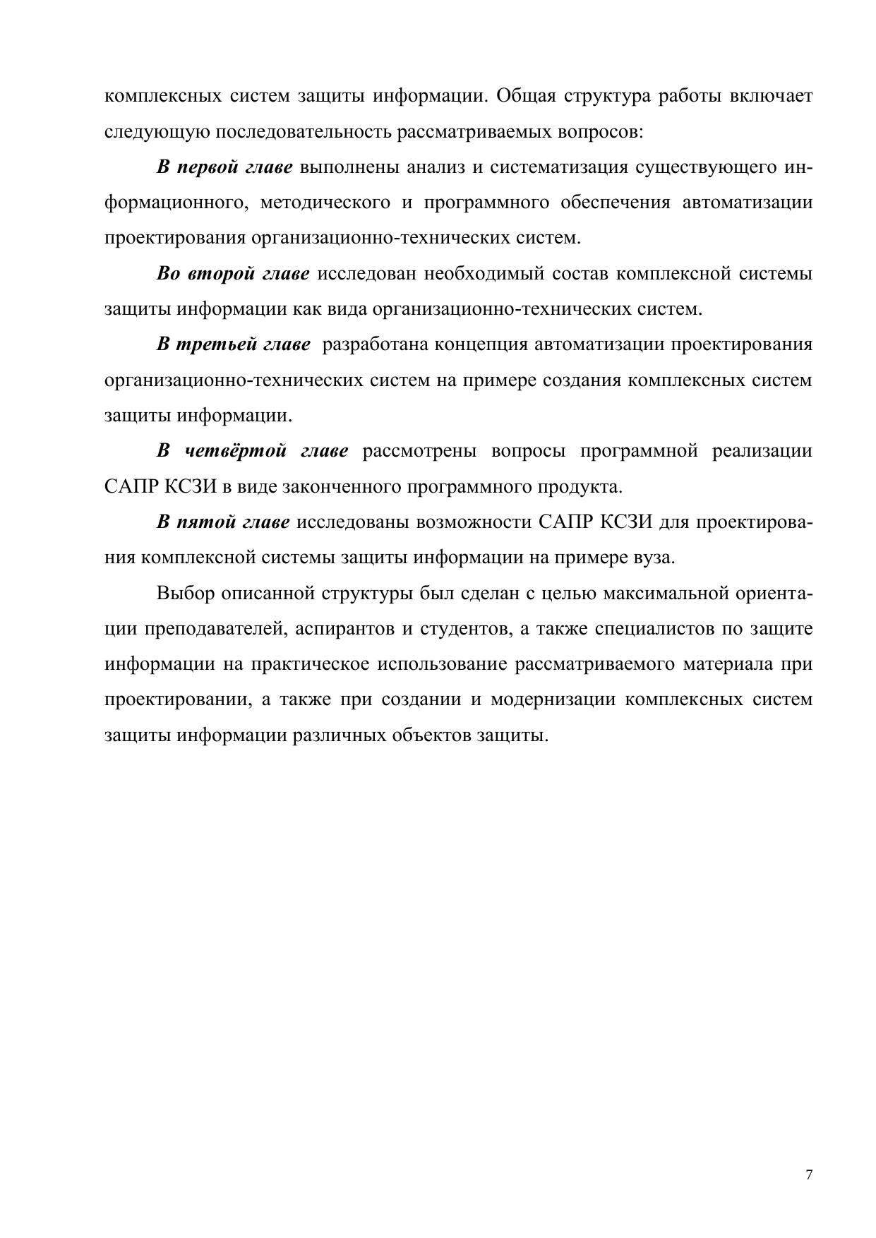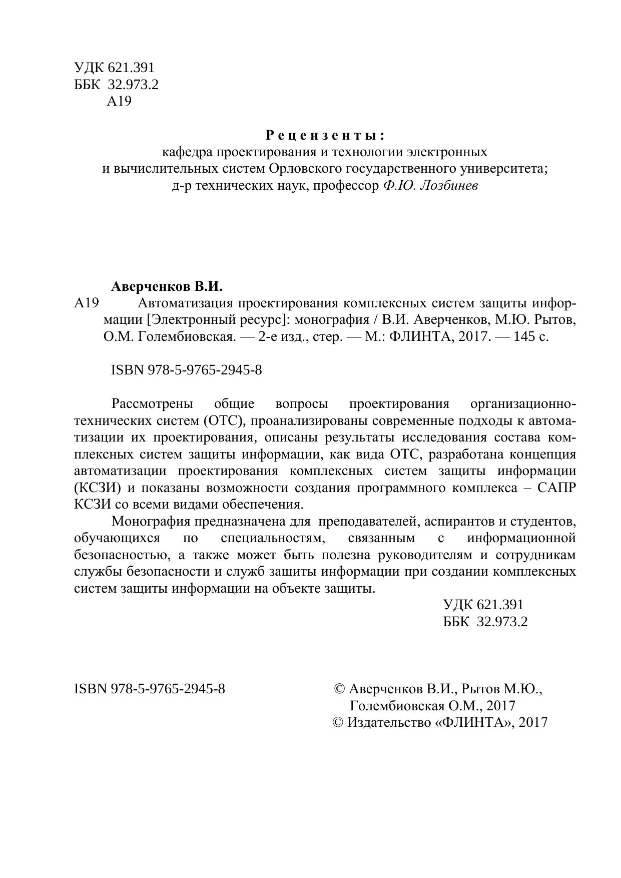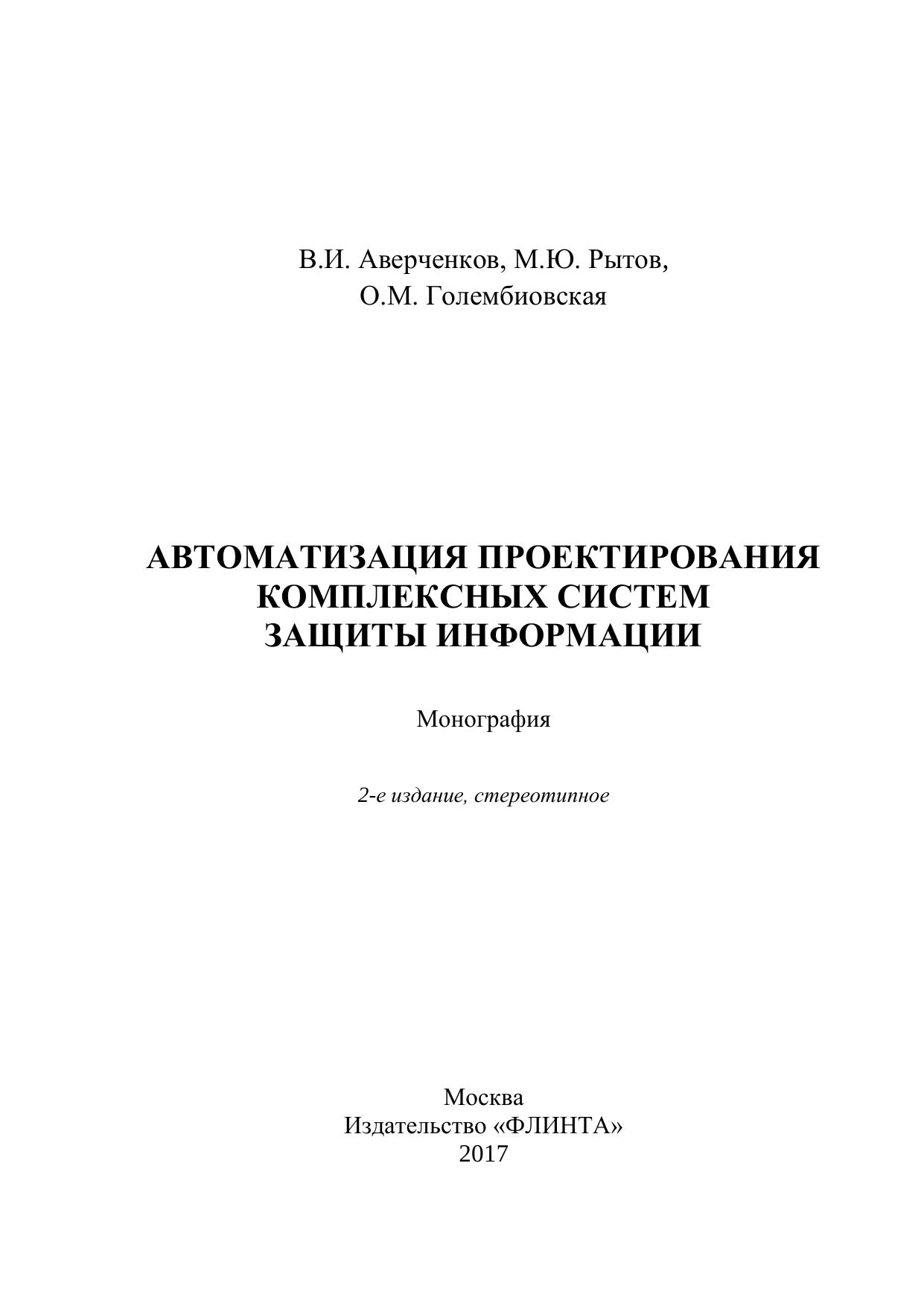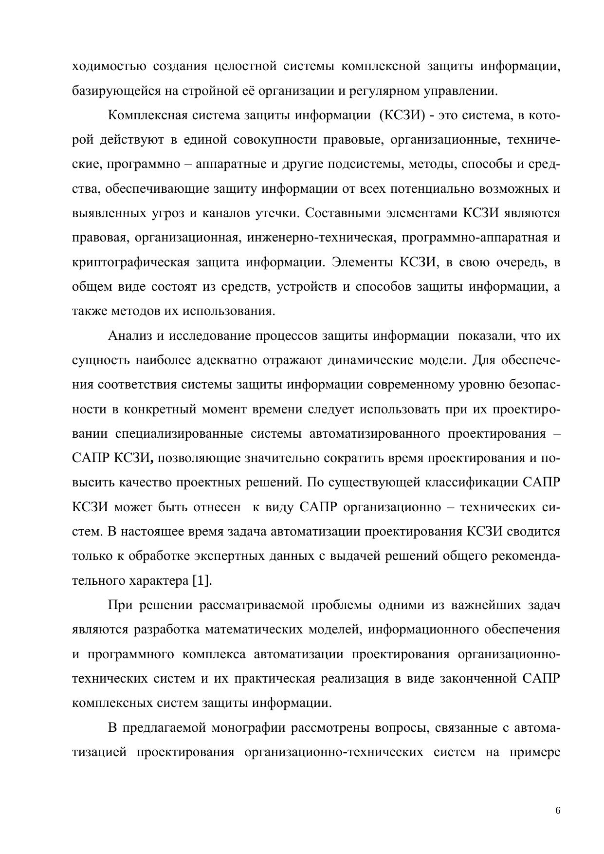 Рассмотрены общие вопросы проектирования организационно-технических систем (ОТС), проанализированы современные подходы к автоматизации их проектирования, описаны результаты исследования состава комплексных систем защиты информации, как вида ОТС, разработана концепция автоматизации проектирования комплексных систем защиты информации (КСЗИ) и показаны возможности создания программного комплекса – САПР КСЗИ со всеми видами обеспечения. Монография предназначена для преподавателей, аспирантов и студентов, обучающихся по специальностям, связанным с информационной безопасностью, а также может быть полезна руководителям и сотрудникам службы безопасности и служб защиты информации при создании комплексных систем защиты информации на объекте защиты.