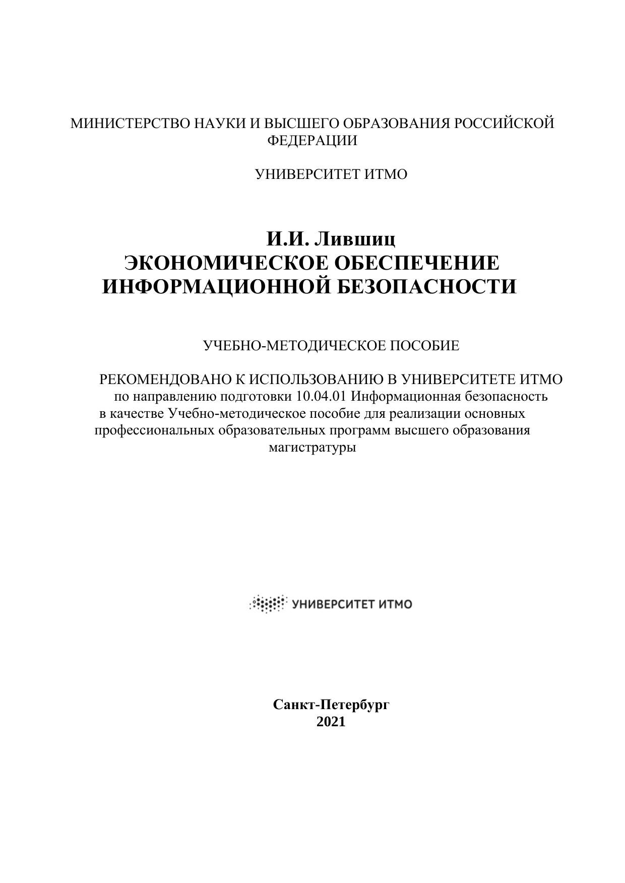 Учебно-методическое пособие «Экономика защиты информации» предназначено для помощи обучающимся по направлению подготовки 10.04.01 «Информационная безопасность» (магистратура). Пособие содержит полный набор лабораторных работ с соответствующей краткой теоретической частью, примерами заполнения, а также с описанием различных ошибок, которые могут встретиться обучающимся при самостоятельном выполнении.