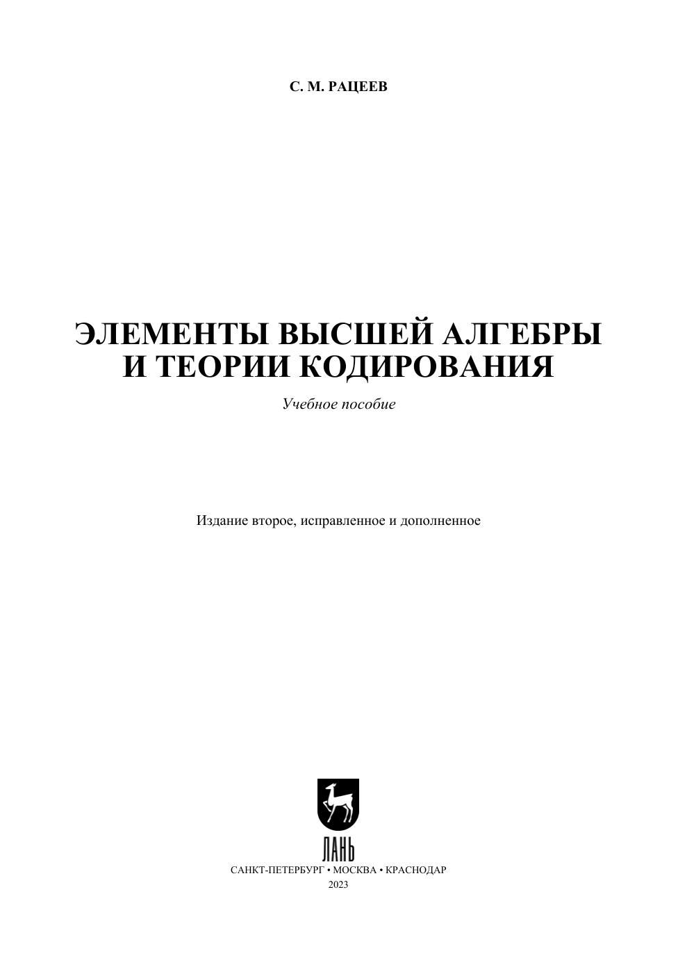 Элементы высшей алгебры и теории кодирования