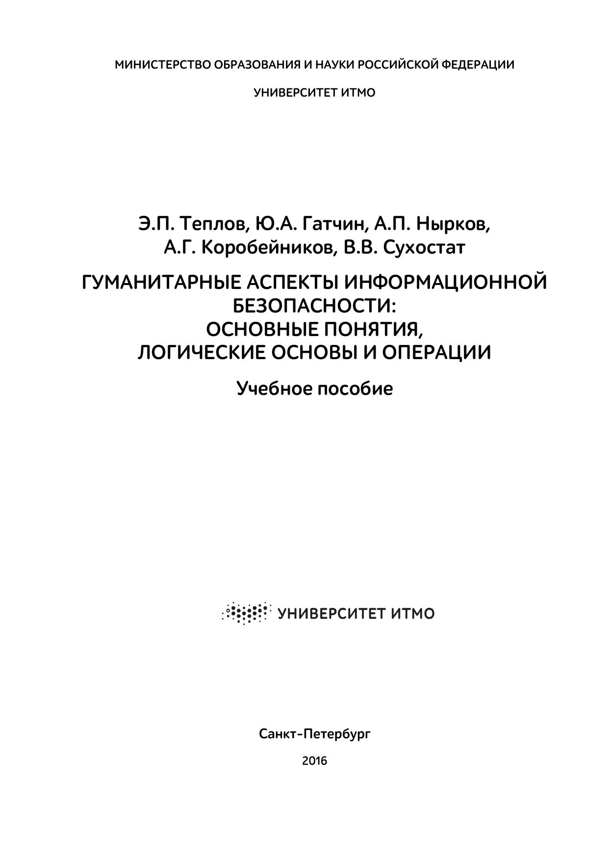 Издательство: НИУ ИТМО (Санкт-Петербургский национальный исследовательский университет информационных технологий, механики и оптики)