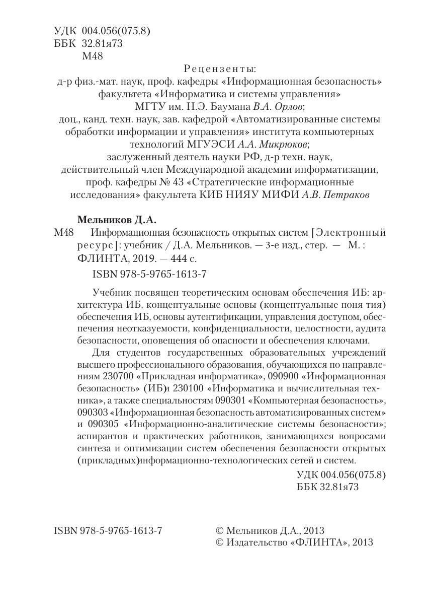 Для студентов государственных обра зовательных учреждений высшего профессионального образования, обучаю щихся по направлениям 230700 «Прикладная информатика», 090900 «Информационная безопасность» (ИБ)и 230100 «Информатика и вычислительная техника», а также специальностям 090301 «Компьютерная безопасность», 090303 «Информационная безопасность автоматизированных систем» и 090305 «Информационно-аналитические системы безопасности»; аспирантов и практических работни ков, занимающихся вопросами синтеза и оптимизации систем обеспечения безопасности открытых (прикладных)и нформационно-технологических сетей и систем.
