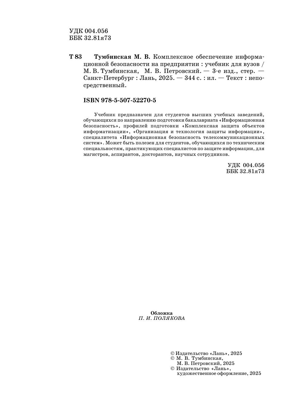 Учебник предназначен для студентов высших учебных заведений, обучающихся по направлению подготовки бакалавриата «Информационная безопасность», профилей подготовки «Организация и технология защиты информации», «Комплексная защита объектов информатизации», специалитета «Информационная безопасность телекоммуникационных систем». Может быть полезен для студентов, обучающихся по техническим специальностям, практикующих специалистов по защите информации, магистрам, аспирантам, докторантам, научным сотрудникам.