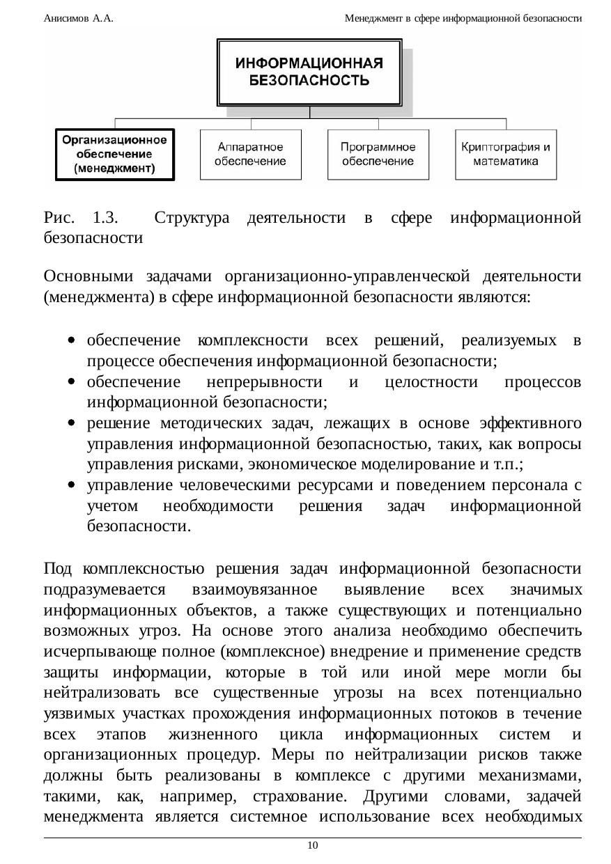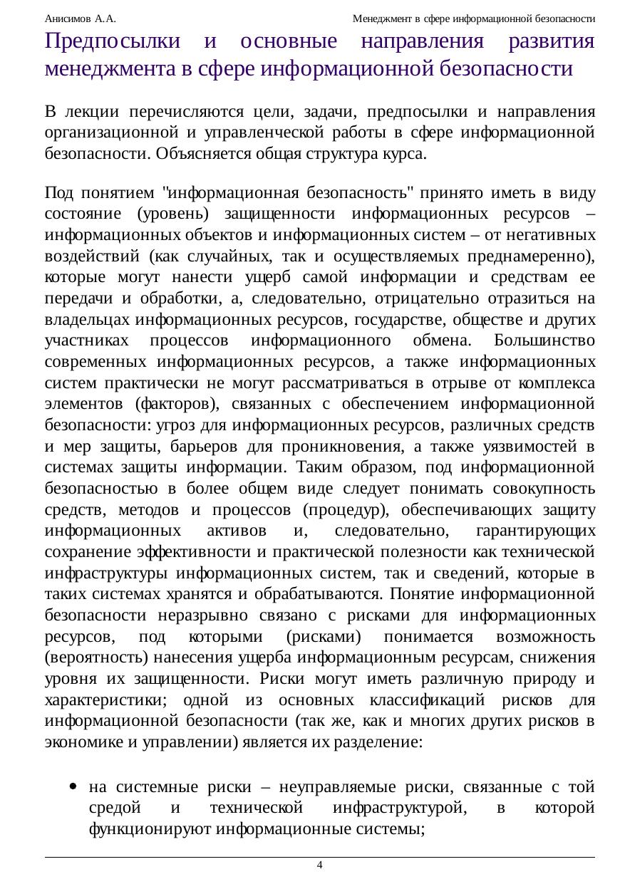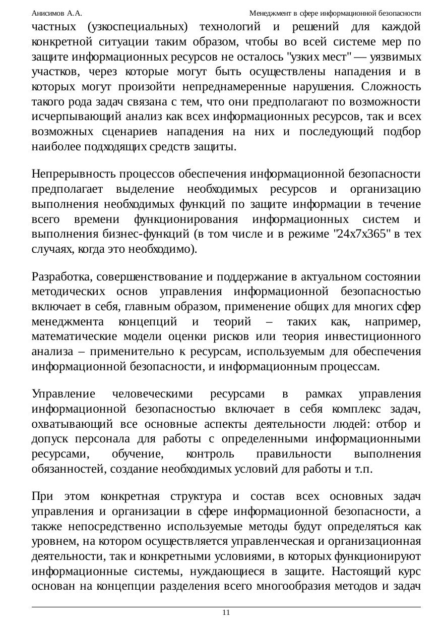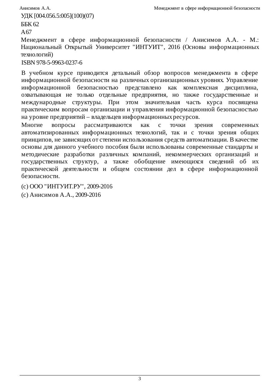 практическим вопросам организации и управления информационной безопасностью на уровне предприятий – владельцев информационных ресурсов. Многие вопросы рассматриваются как с точки зрения современных автоматизированных информационных технологий, так и с точки зрения общих принципов, не зависящих от степени использования средств автоматизации. В качестве