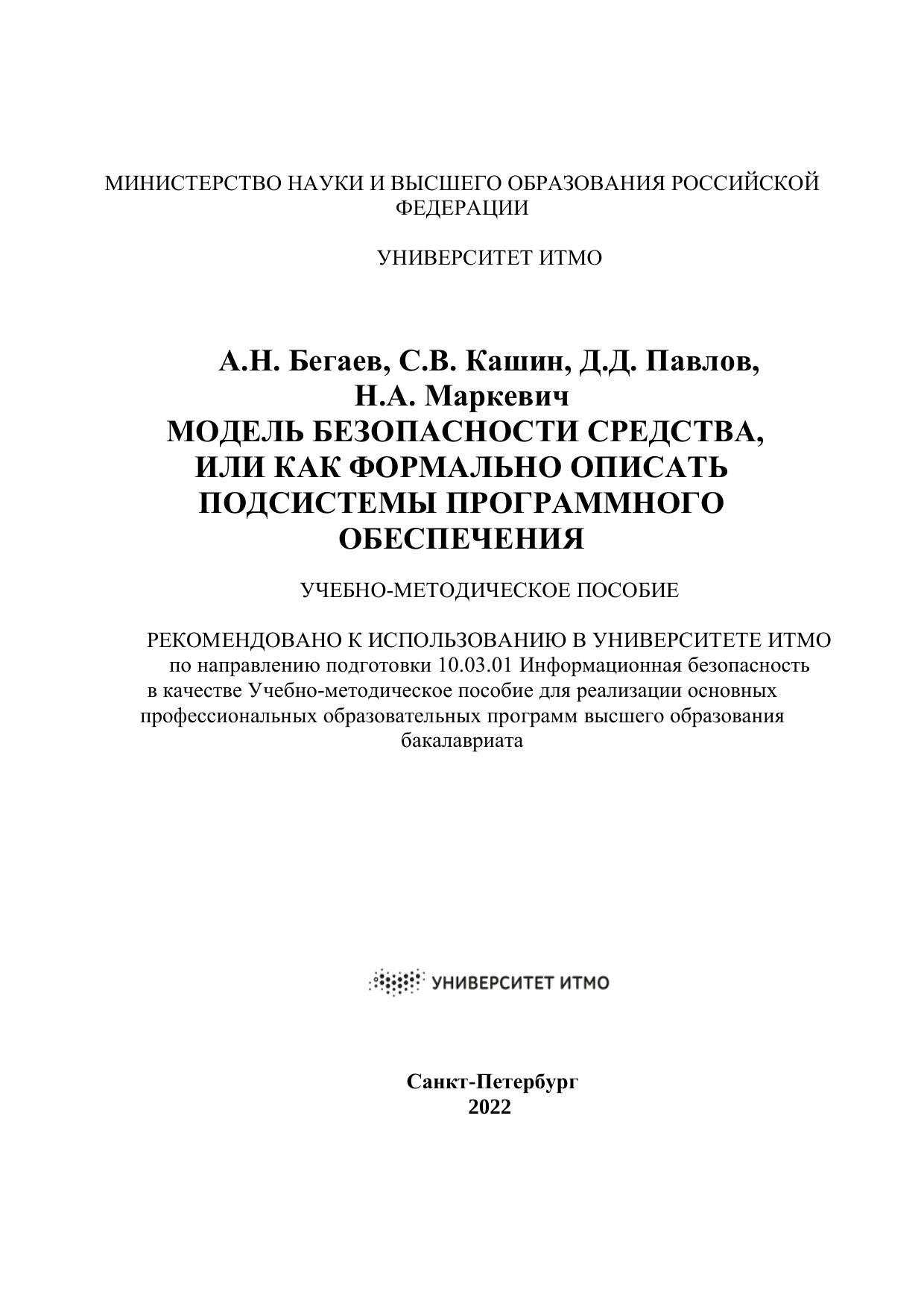 Авторы: Бегаев А. Н., Кашин С. В., Павлов Д. Д., Маркевич Н. А.