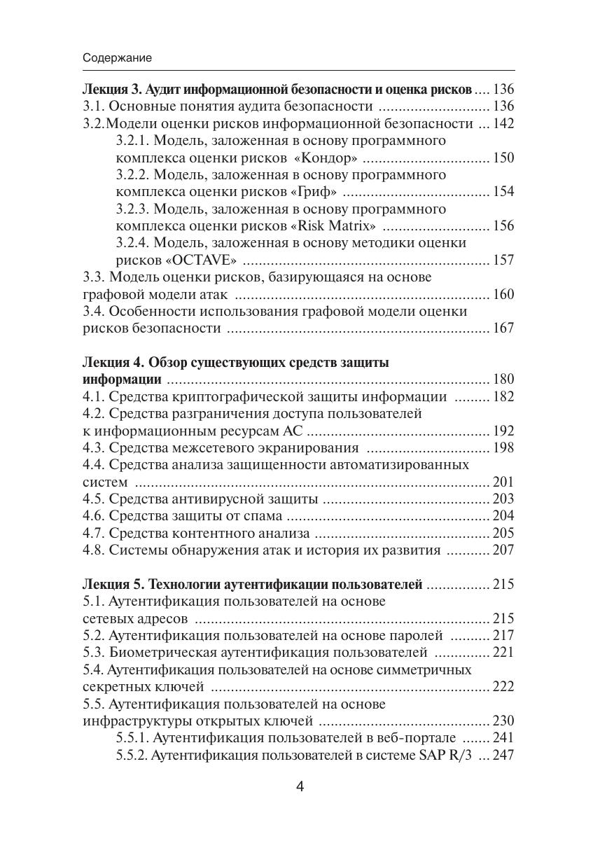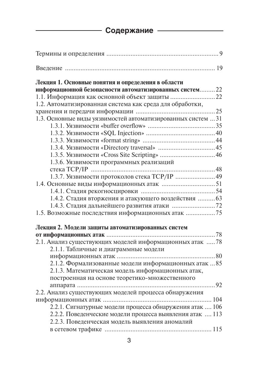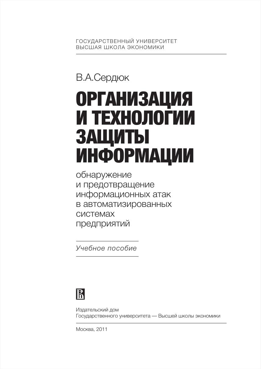 Проблема защиты автоматизированных систем от информационных атак является одной из наиболее актуальных и значимых в ИТ-индустрии. В основу этого учебного пособия положен многолетний практический опыт проектирования, разработки и внедрения комплексных систем защиты от информационных атак. Особое внимание уделено средствам защиты, которые классифицируются как системы обнаружения атак и системы предотвращения атак. Учебное пособие включает лекционные материалы, охватывающие основные темы в области информационной безопасности: виды уязвимостей, информационных атак и их возможных последствий; математические модели защиты автоматизированных систем от информационных атак; практические аспекты проведения аудита и оценки рисков информационной безопасности; существующие криптографические методы защиты информационных ресурсов; технологии идентификации, аутентификации и авторизации пользователей информационных систем; информационная безопасность территориально-распределенных сетей связи X.25, Frame Relay и ATM; системы обнаружения и предотвращения атак и особенности их практического применения; обучение и сертификация специалистов по информационной безопасности. Для студентов, изучающих курс «Организация и технологии защиты информации», а также всех интересующихся современными методами и средствами защиты от информационных атак.