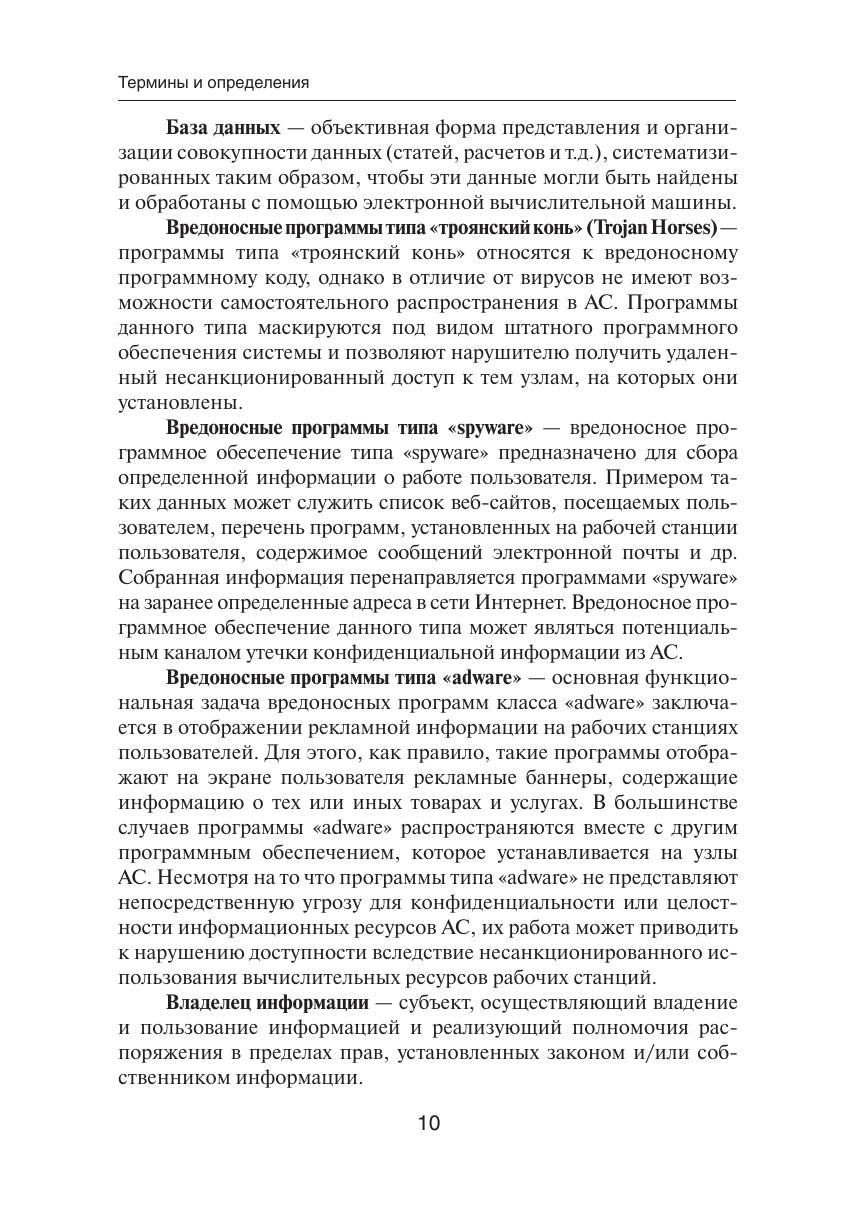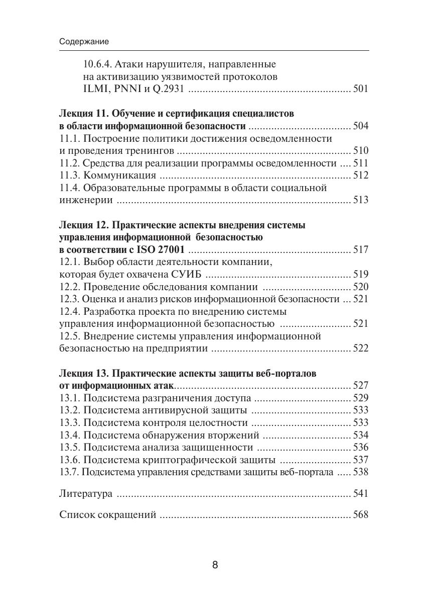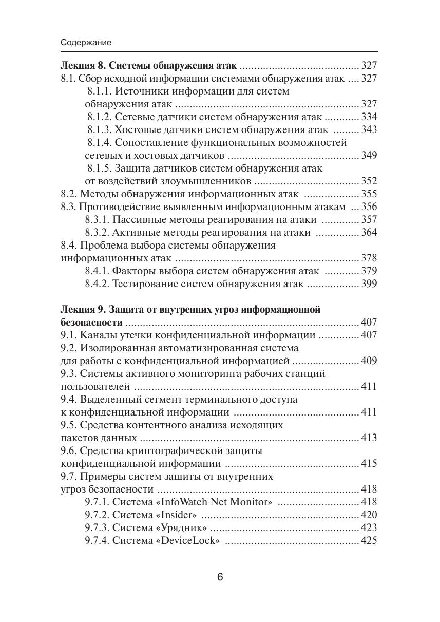 Проблема защиты автоматизированных систем от информационных атак является одной из наиболее актуальных и значимых в ИТ-индустрии. В основу этого учебного пособия положен многолетний практический опыт проектирования, разработки и внедрения комплексных систем защиты от информационных атак. Особое внимание уделено средствам защиты, которые классифицируются как системы обнаружения атак и системы предотвращения атак. Учебное пособие включает лекционные материалы, охватывающие основные темы в области информационной безопасности: виды уязвимостей, информационных атак и их возможных последствий; математические модели защиты автоматизированных систем от информационных атак; практические аспекты проведения аудита и оценки рисков информационной безопасности; существующие криптографические методы защиты информационных ресурсов; технологии идентификации, аутентификации и авторизации пользователей информационных систем; информационная безопасность территориально-распределенных сетей связи X.25, Frame Relay и ATM; системы обнаружения и предотвращения атак и особенности их практического применения; обучение и сертификация специалистов по информационной безопасности. Для студентов, изучающих курс «Организация и технологии защиты информации», а также всех интересующихся современными методами и средствами защиты от информационных атак.