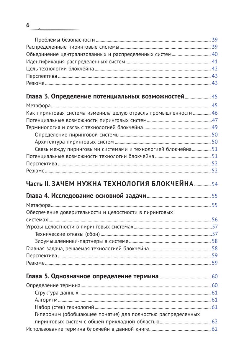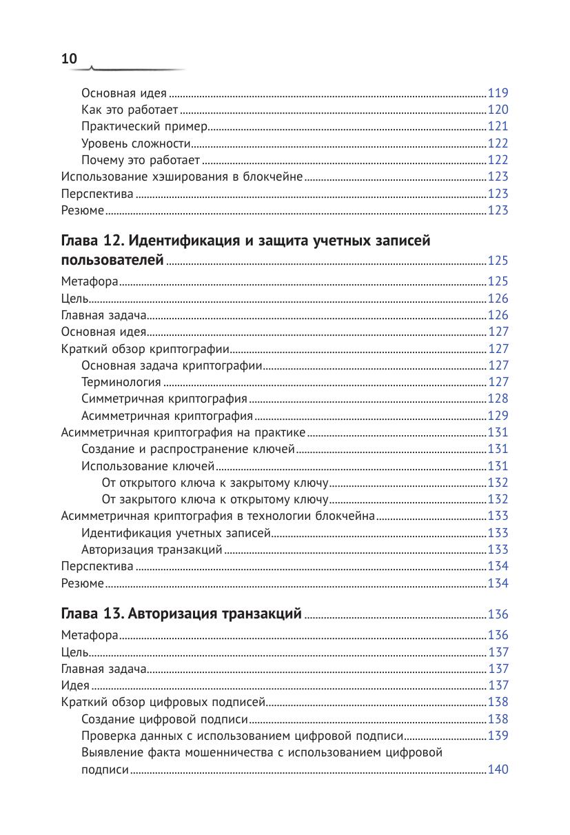 Книга подробно рассматривает технические концепции технологии блокчейн, такие как пиринговые и распределенные системы, структуры данных, транзакции, криптография и хэш-значения, целостность систем и достижение консенсуса в распределенной среде. Книга написана в диалоговом стиле, без использования компьютерного и математического жаргона. Материал излагается в пошаговой, логически связанной манере, что позволяет последовательно, уровень за уровнем, наращивать знания о технологии блокчейна. Многочисленные примеры, аналогии и метафоры помогают лучше понять, как работают блокчейн-системы даже тем, кто до этого ничего не знал об этом.