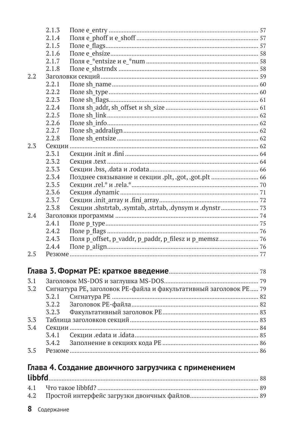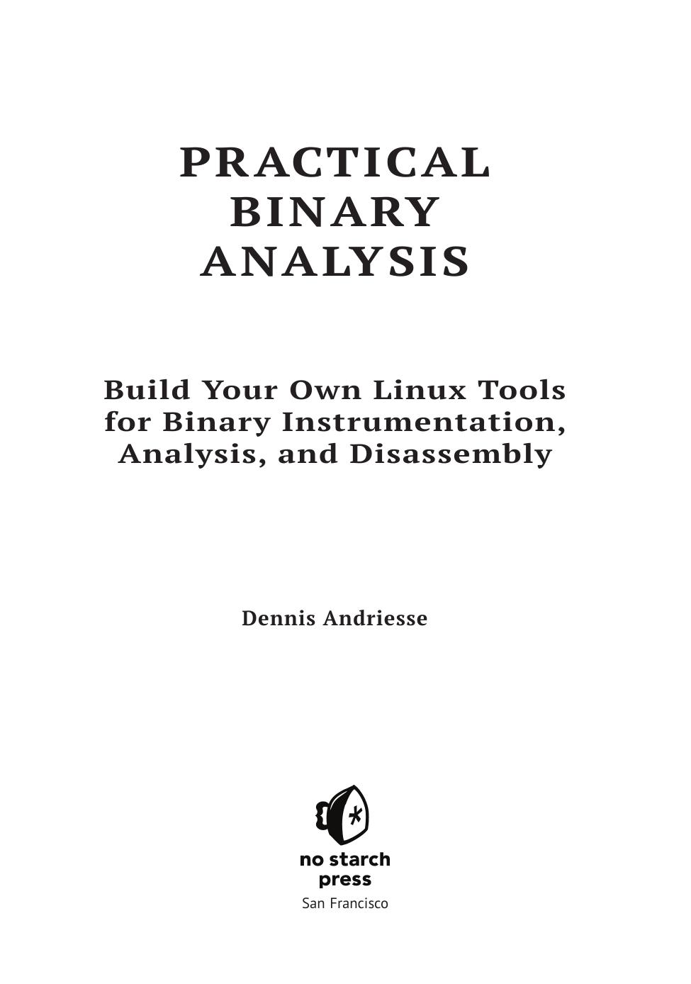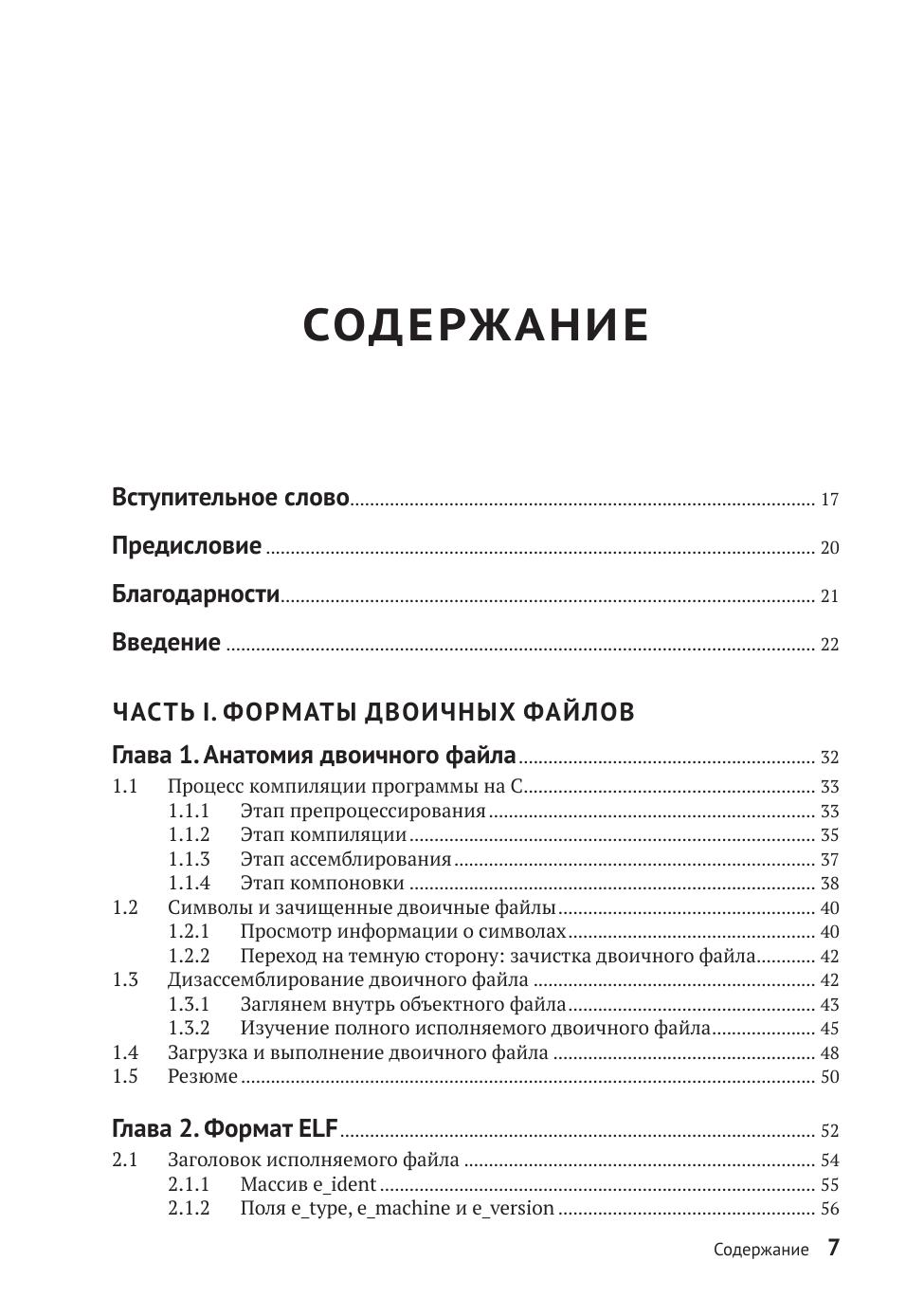 В книге рассматриваются вопросы двоичного анализа и оснащения двоичного кода. После знакомства с базовыми понятиями и форматами двоичных файлов вы приступите к их анализу, применяя для этой цели набор средств GNU/Linux binutils, дизассемблирование и внедрение кода. Затем вы реализуете инструменты профилирования с применением Pin, создадите инструменты динамического анализа заражения с помощью libdft и т. д.