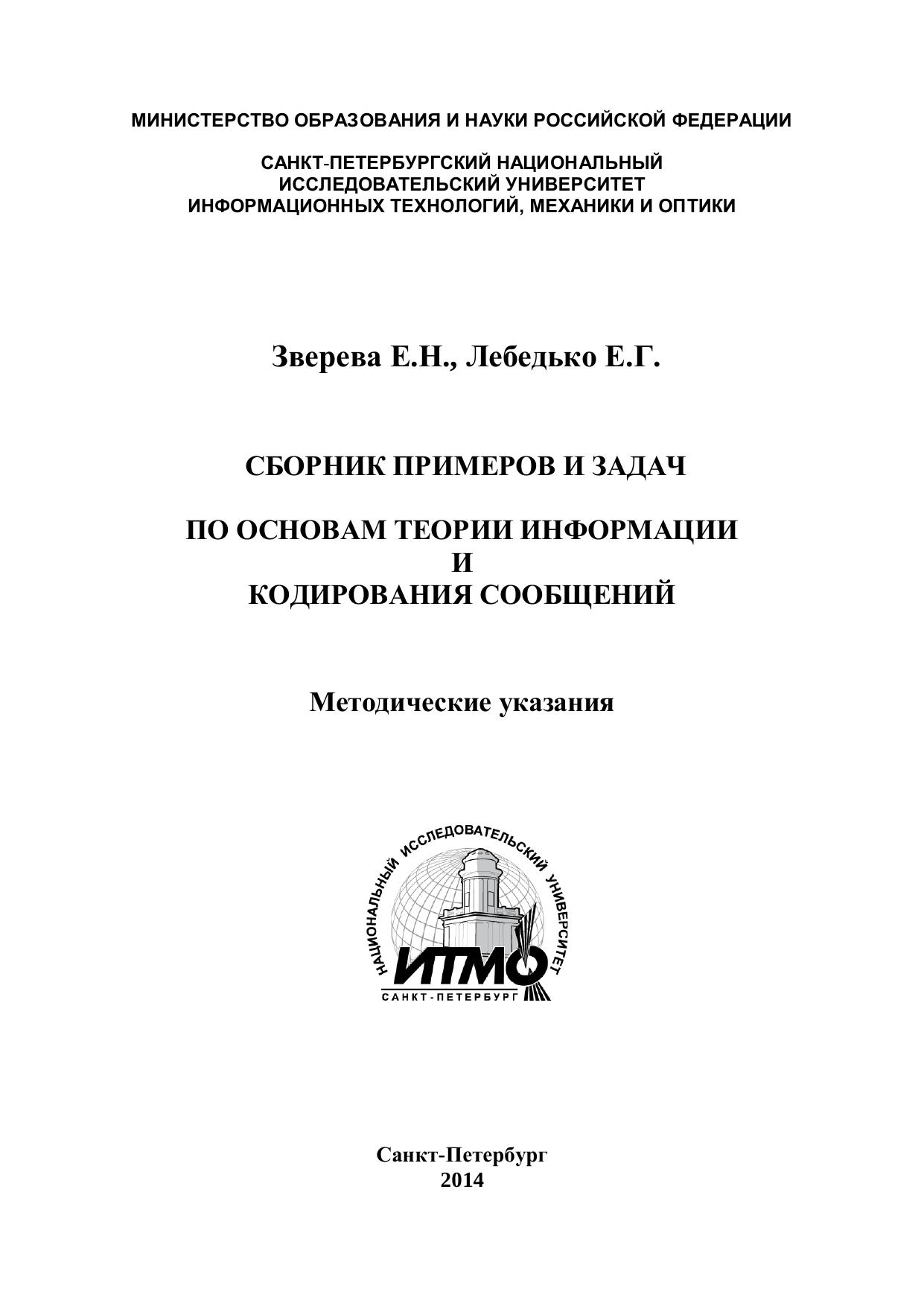 Сборник примеров и задач по основам теории информации и кодирования сообщений