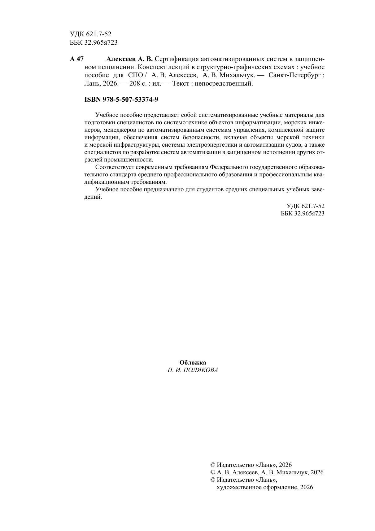 Учебное пособие представляет собой систематизированные учебные материалы для подготовки специалистов по системотехнике объектов информатизации, морских инженеров, менеджеров по автоматизированным системам управления, комплексной защите информации, обеспечения систем безопасности, включая объекты морской техники и морской инфраструктуры, системы электроэнергетики и автоматизации судов, а также специалистов по разработке систем автоматизации в защищенном исполнении других отраслей промышленности. Соответствует современным требованиям Федерального государственного образовательного стандарта среднего профессионального образования и профессиональным квалификационным требованиям. Учебное пособие предназначено для студентов средних специальных учебных заведений.