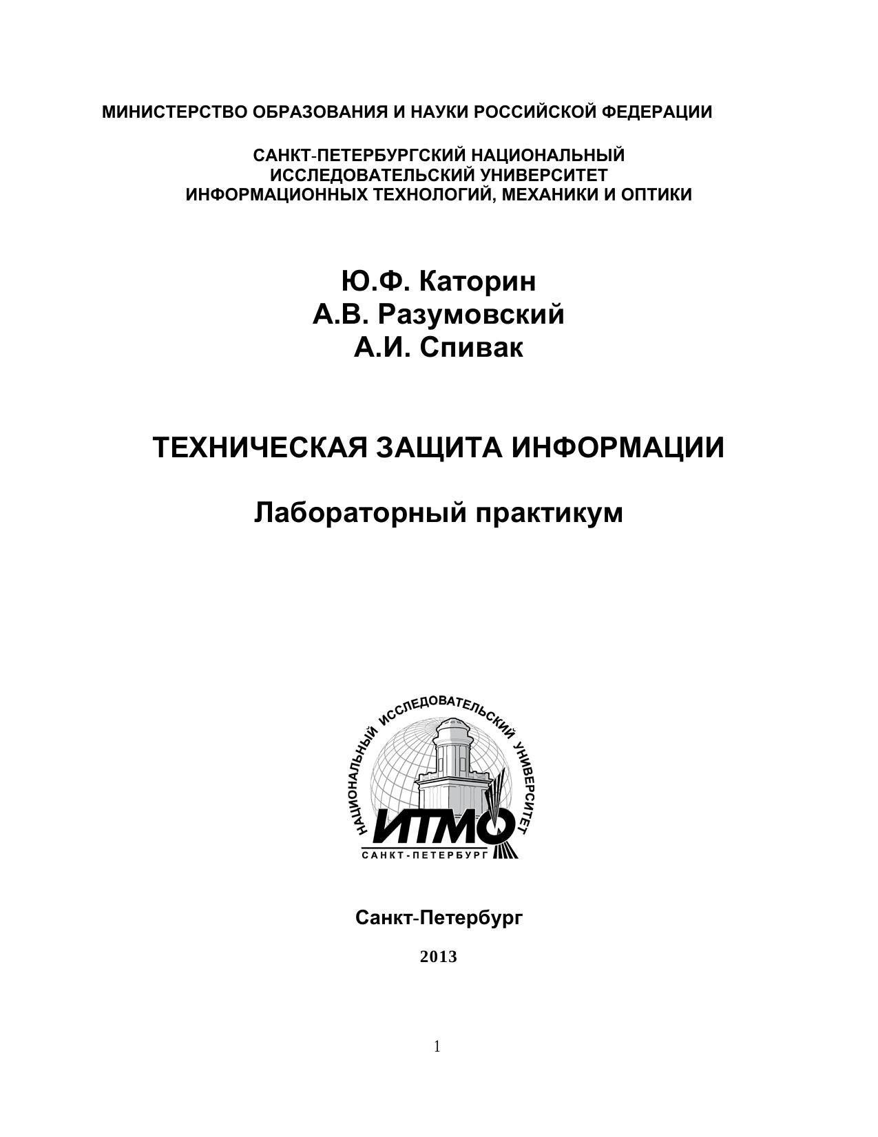 Издательство: НИУ ИТМО (Санкт-Петербургский национальный исследовательский университет информационных технологий, механики и оптики)