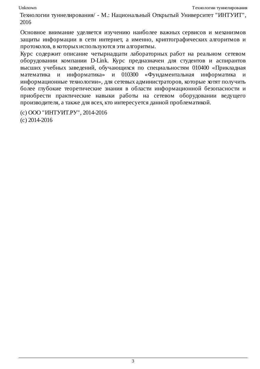 Основное внимание уделяется изучению наиболее важных сервисов и механизмов защиты информации в сети интернет, а именно, криптографических алгоритмов и протоколов, в которых используются эти алгоритмы. Курс содержит описание четырнадцати лабораторных работ на реальном сетевом оборудовании компании D-Link. Курс предназначен для студентов и аспирантов высших учебных заведений, обучающихся по специальностям 010400 «Прикладная математика и информатика» и 010300 «Фундаментальная информатика и информационные технологии», для сетевых администраторов, которые хотят получить более глубокие теоретические знания в области информационной безопасности и приобрести практические навыки работы на сетевом оборудовании ведущего производителя, а также для всех, кто интересуется данной проблематикой.