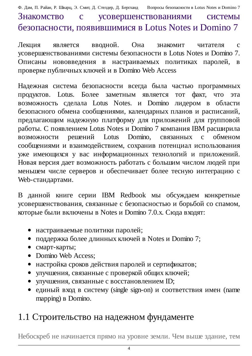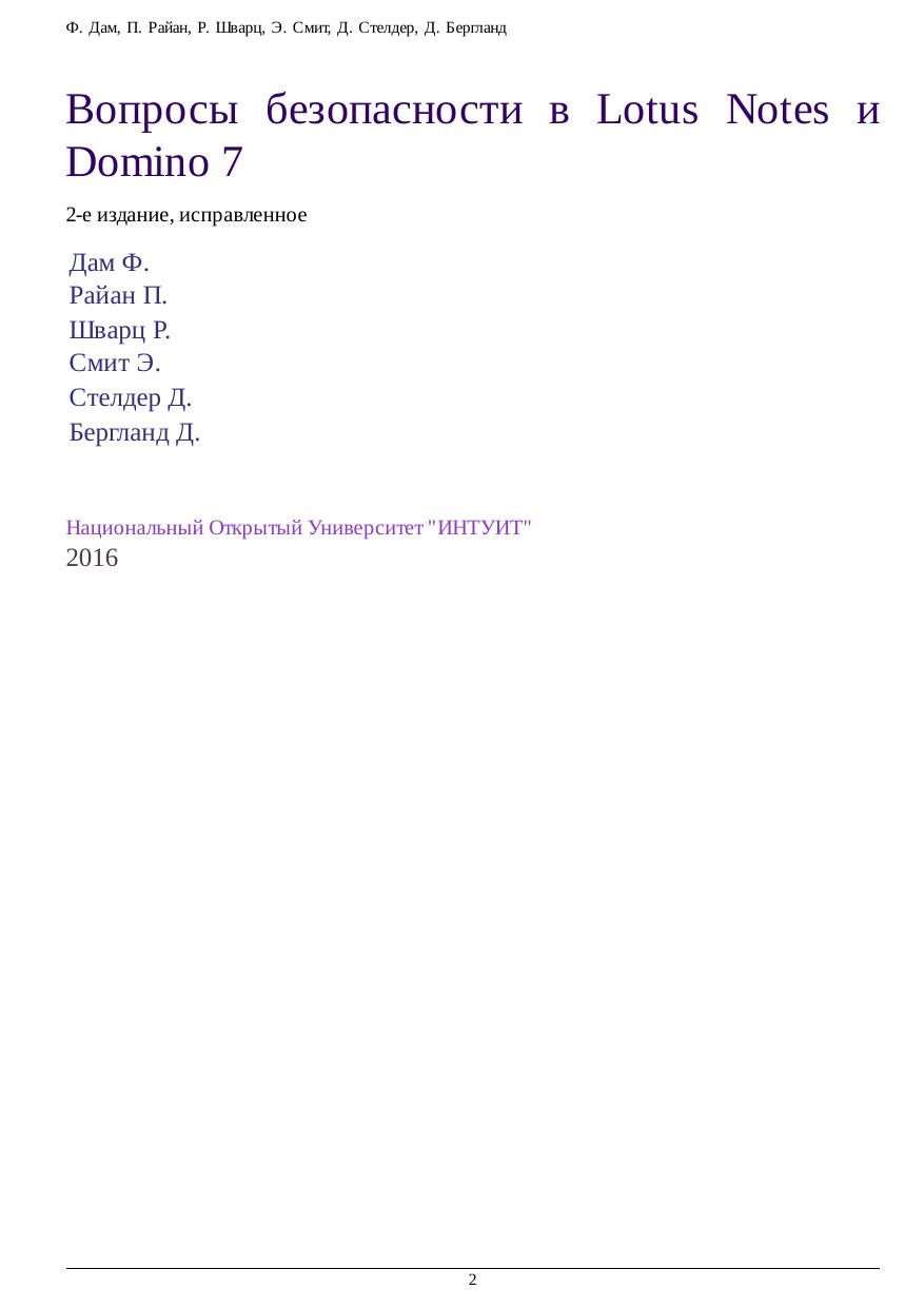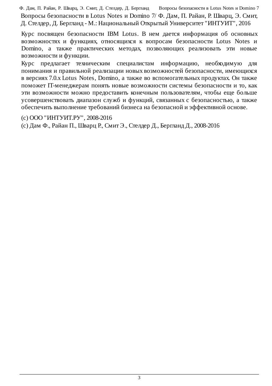Курс посвящен безопасности IBM Lotus. В нем дается информация об основных возможностях и функциях, относящихся к вопросам безопасности Lotus Notes и Domino, а также практических методах, позволяющих реализовать эти новые возможности и функции. Курс предлагает техническим специалистам информацию, необходимую для понимания и правильной реализации новых возможностей безопасности, имеющихся в версиях 7.0.x Lotus Notes, Domino, а также во вспомогательных продуктах. Он также поможет IT-менеджерам понять новые возможности системы безопасности и то, как