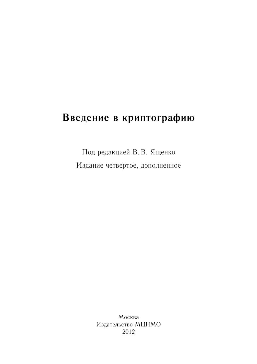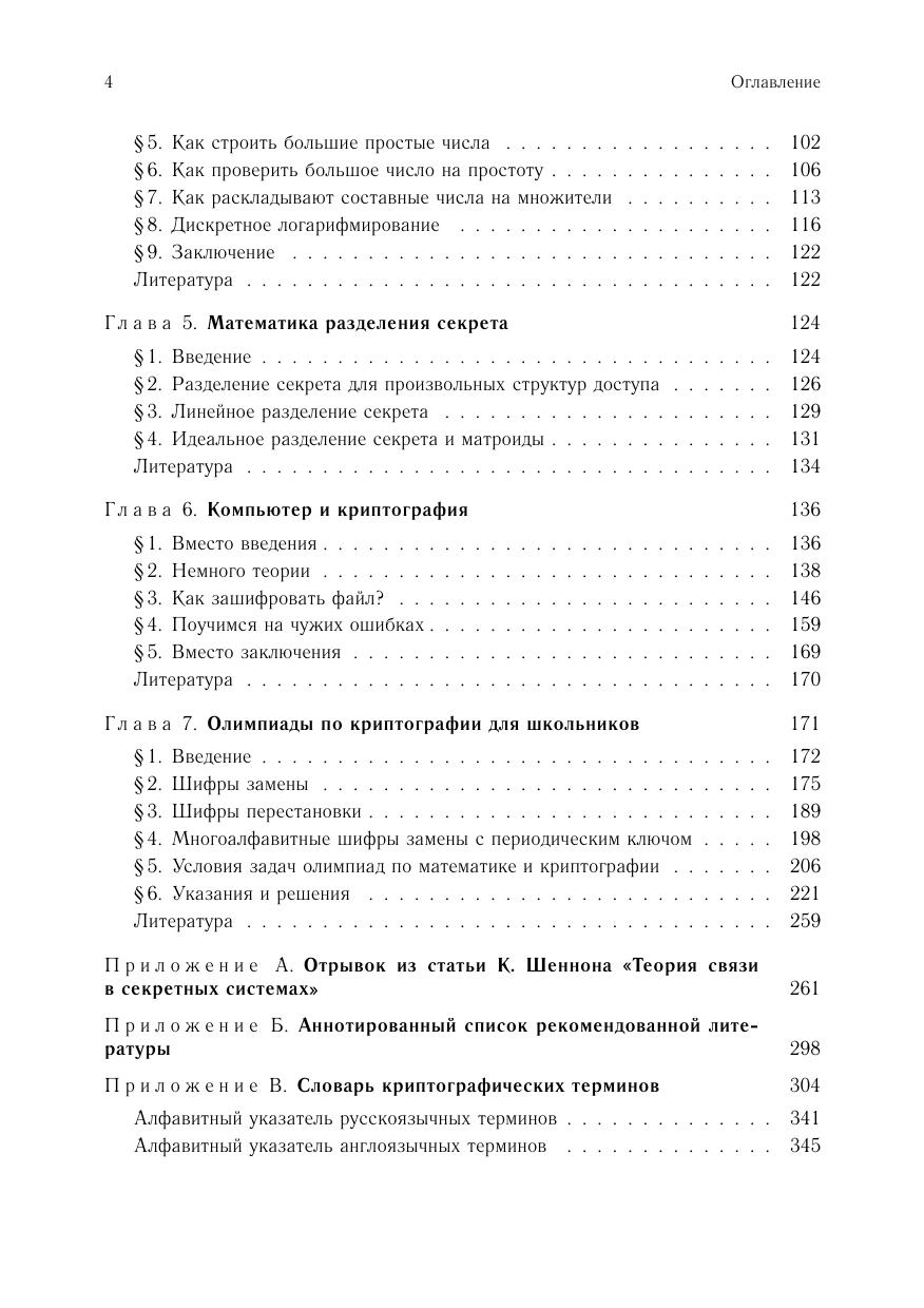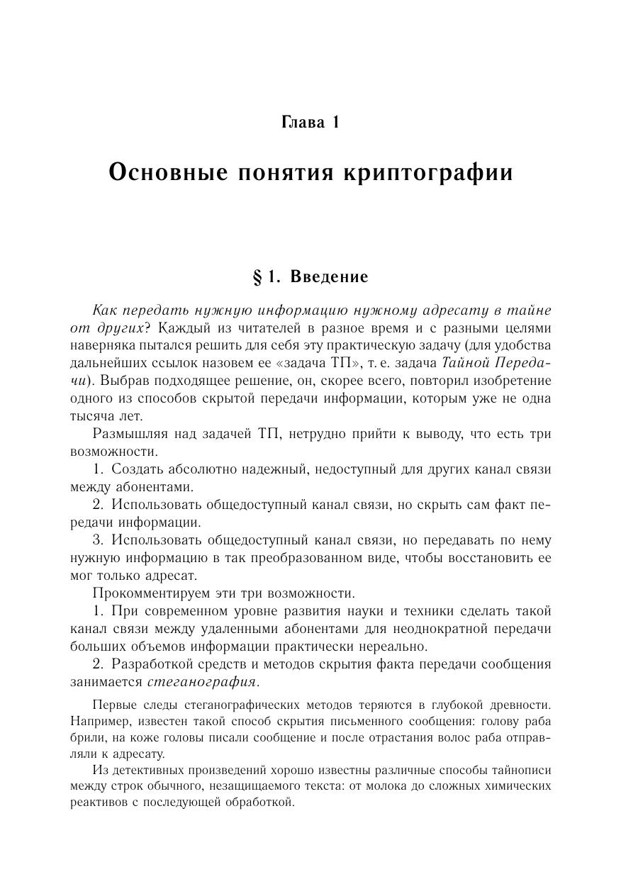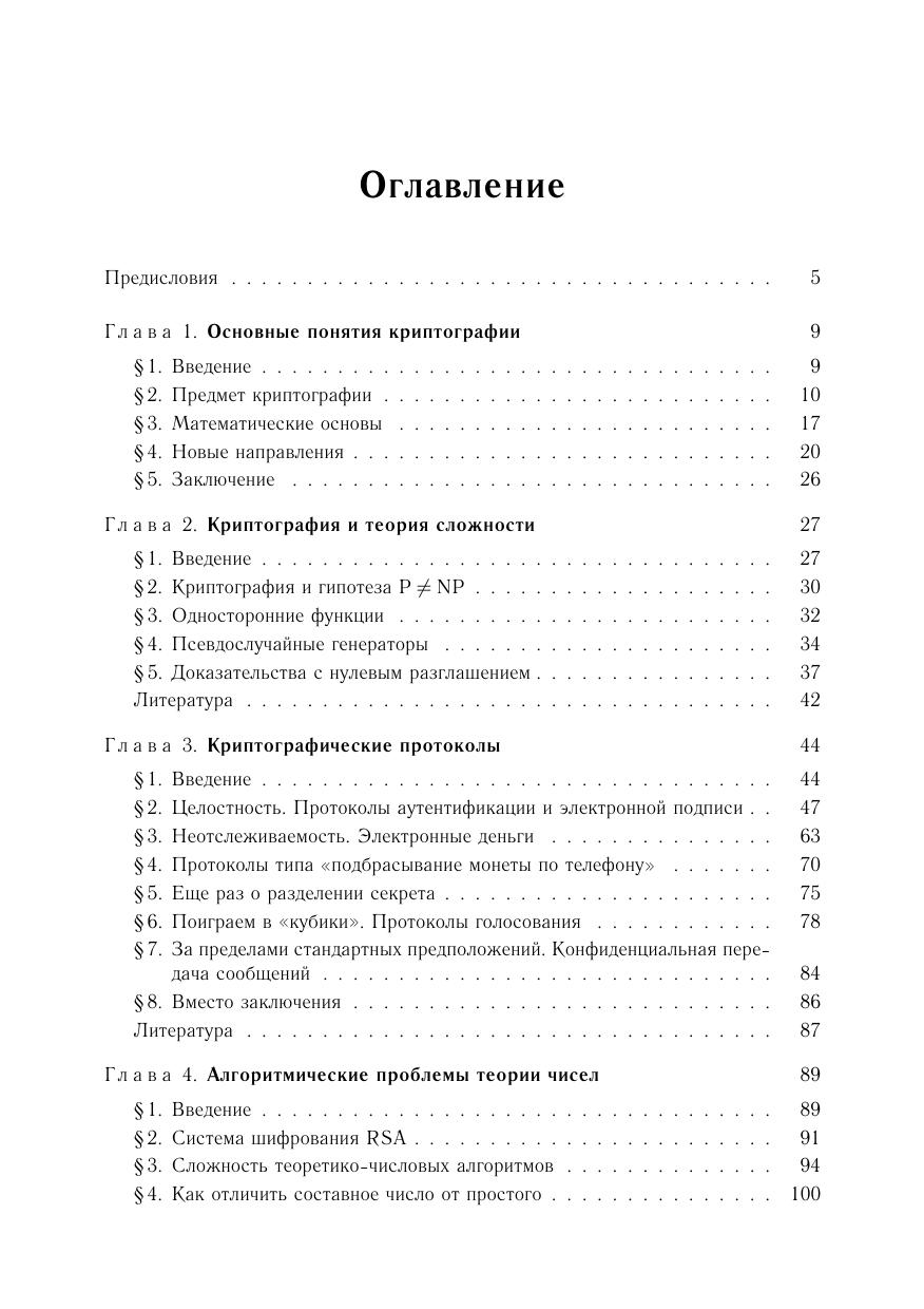 В книге впервые на русском языке дается систематическое изложение научных основ криптографии от простейших примеров и основных понятий до современных криптографических конструкций. Понимание принципов криптографии стало для многих потребностью в связи с широким распространением криптографических средств обеспечения информационной безопасности, поэтому книга может быть полезна массовому читателю. В книгу включены задачи олимпиад по криптографии для школьников. Книга рассчитана на школьников, студентов-математиков и специалистов по информационной безопасности.