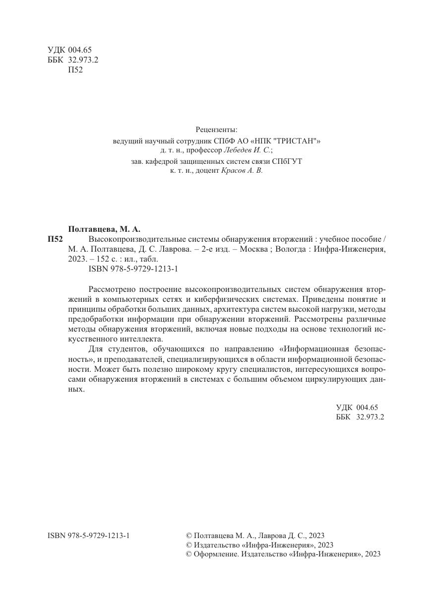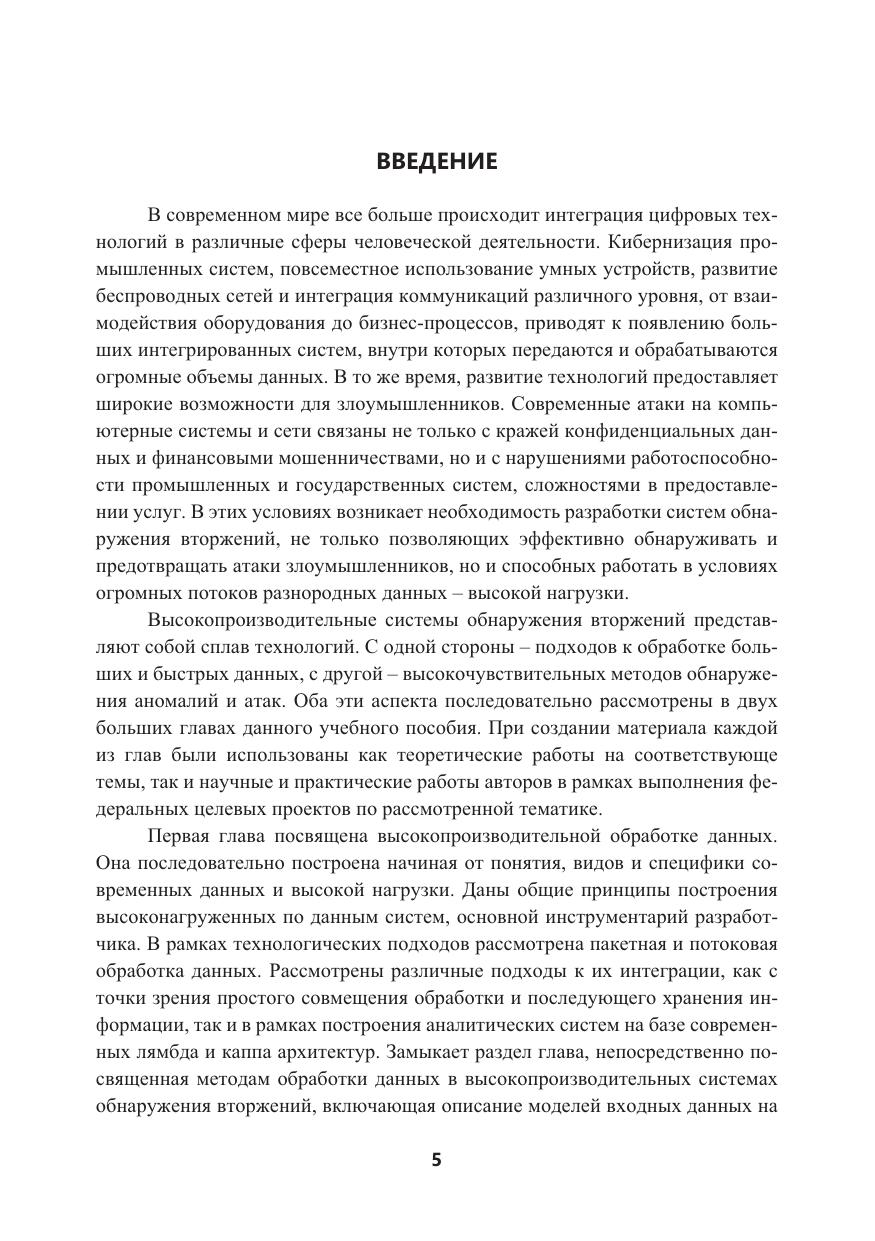 Для студентов, обучающихся по направлению «Информационная безопасность», и преподавателей, специализирующихся в области информационной безопасности. Может быть полезно широкому кругу специалистов, интересующихся вопросами обнаружения вторжений в системах с большим объемом циркулирующих данных.
