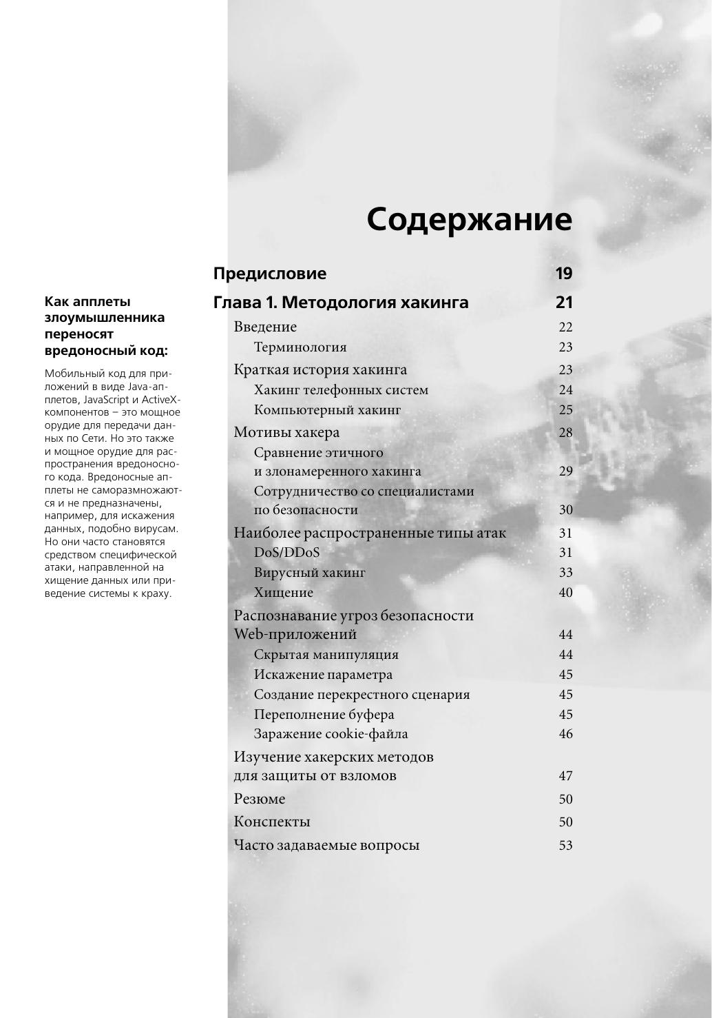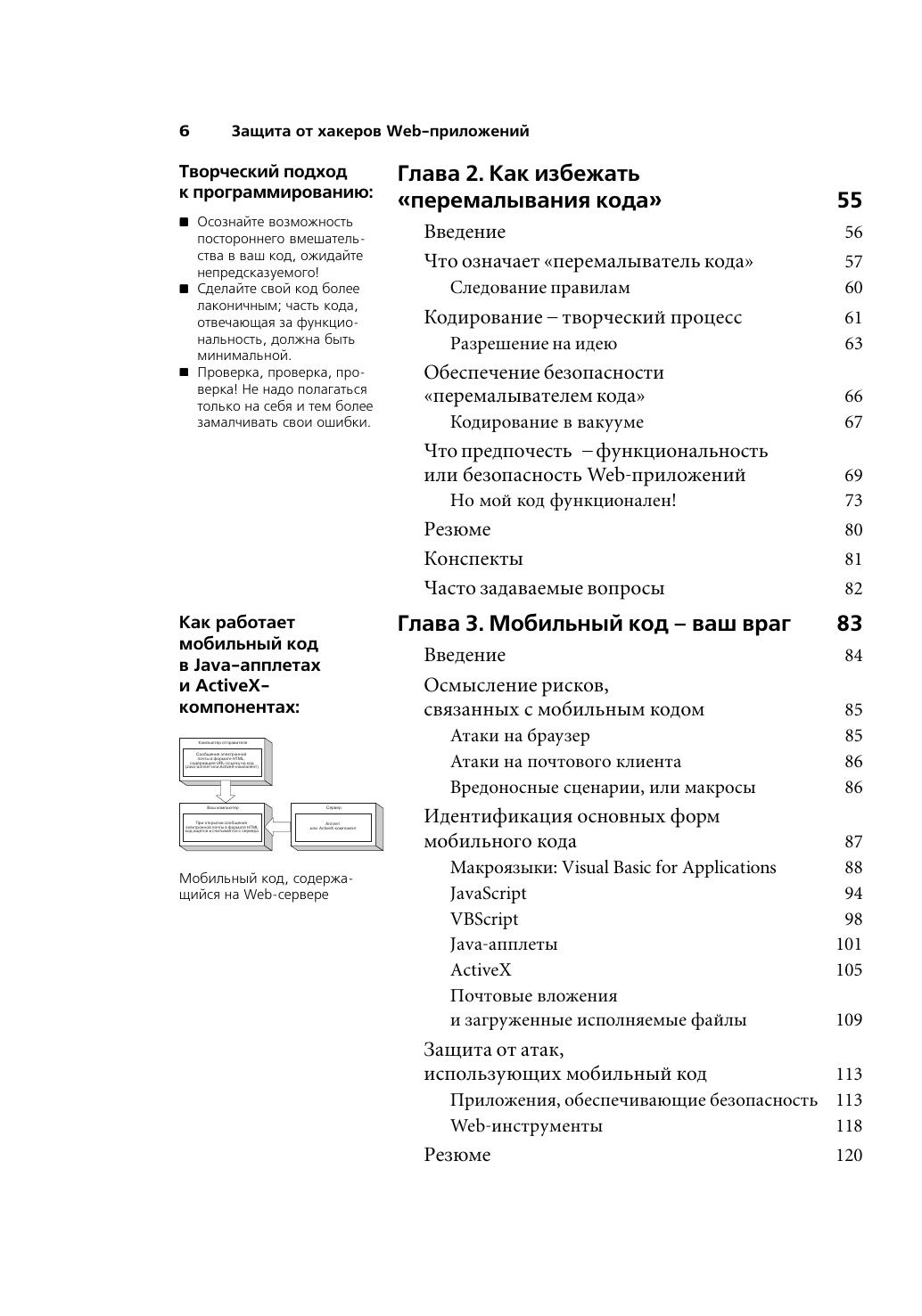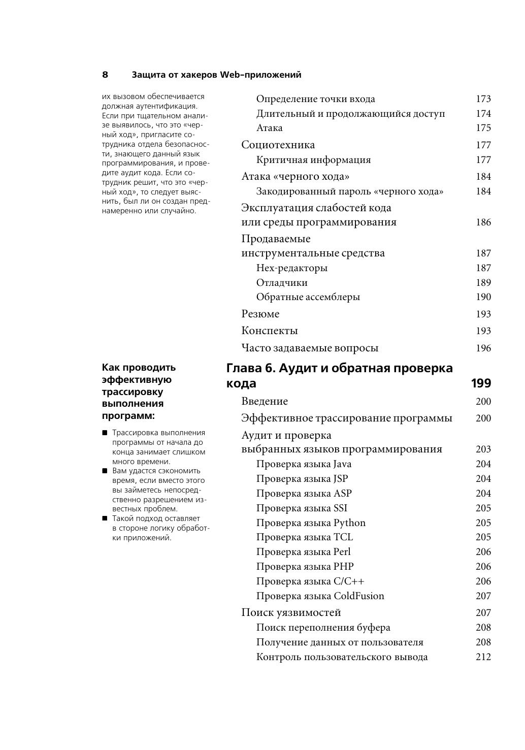 В этом издании представлены инструментальные средства для защиты Web-приложений и подробно рассмотрены базовые подходы для обеспечения безопасного управления сайтами, разработки безопасного кода, планирования защиты. Книга научит читателя «думать, как хакер» и благодаря этому лучше защищать информационные ресурсы сайта и конфиденциальные данные, обеспечивая их целостность. Внимание читателей акцентируется на проблеме безопасности от начальной до конечной стадии разработки приложений. Подробно рассматриваются такие важные темы обеспечения успешной защиты Web-приложений от атак, как разработка плана сетевой безопасности, плана безопасности приложений и защиты рабочих мест, тестирование, изменение и совершенствование прикладных методов и средств, а также методы осуществления угроз безопасности. В книге представлен обзор сайтов и форумов для разработчиков, публикующих перечень всех известных текущих угроз и проводящих консультации по проблемам безопасности.