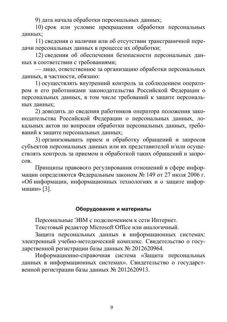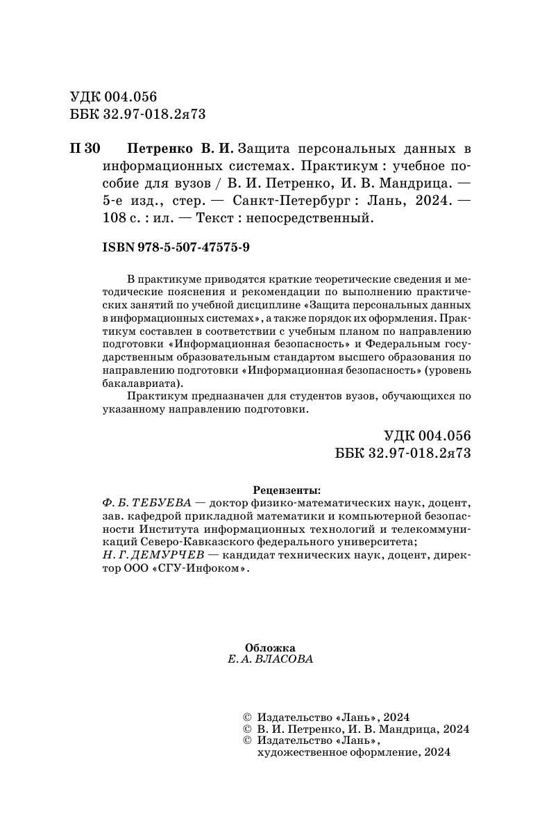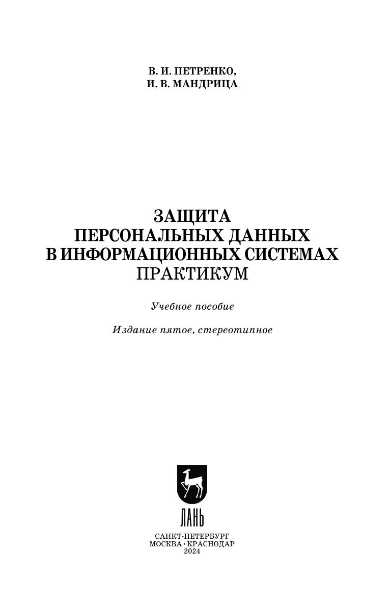 В практикуме приводятся краткие теоретические сведения и методические пояснения и рекомендации по выполнению практических занятий по учебной дисциплине «Защита персональных данных в информационных системах», а также порядок их оформления. Практикум составлен в соответствии с учебным планом по направлению подготовки «Информационная безопасность» и Федеральным государственным образовательным стандартом высшего образования по направлению подготовки «Информационная безопасность» (уровень бакалавриата). Практикум предназначен для студентов, обучающихся по указанному направлению подготовки.